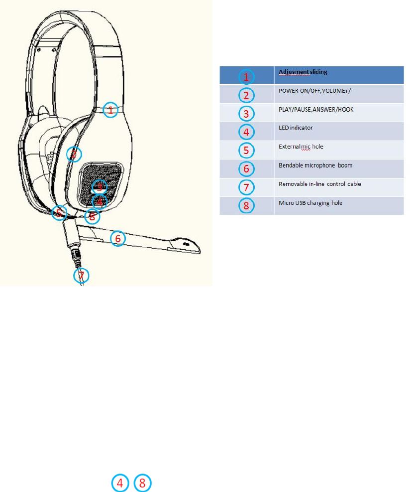 i. Music mode: The headset has an AUX entry build-in on the left side of