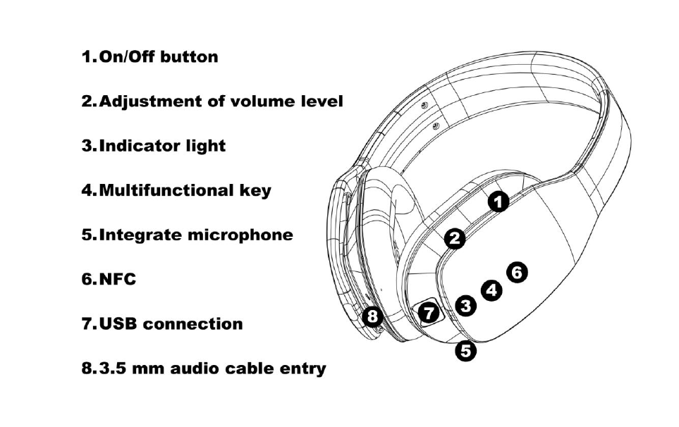 Before using the headphone, you must fully charge the battery and connect the headset to