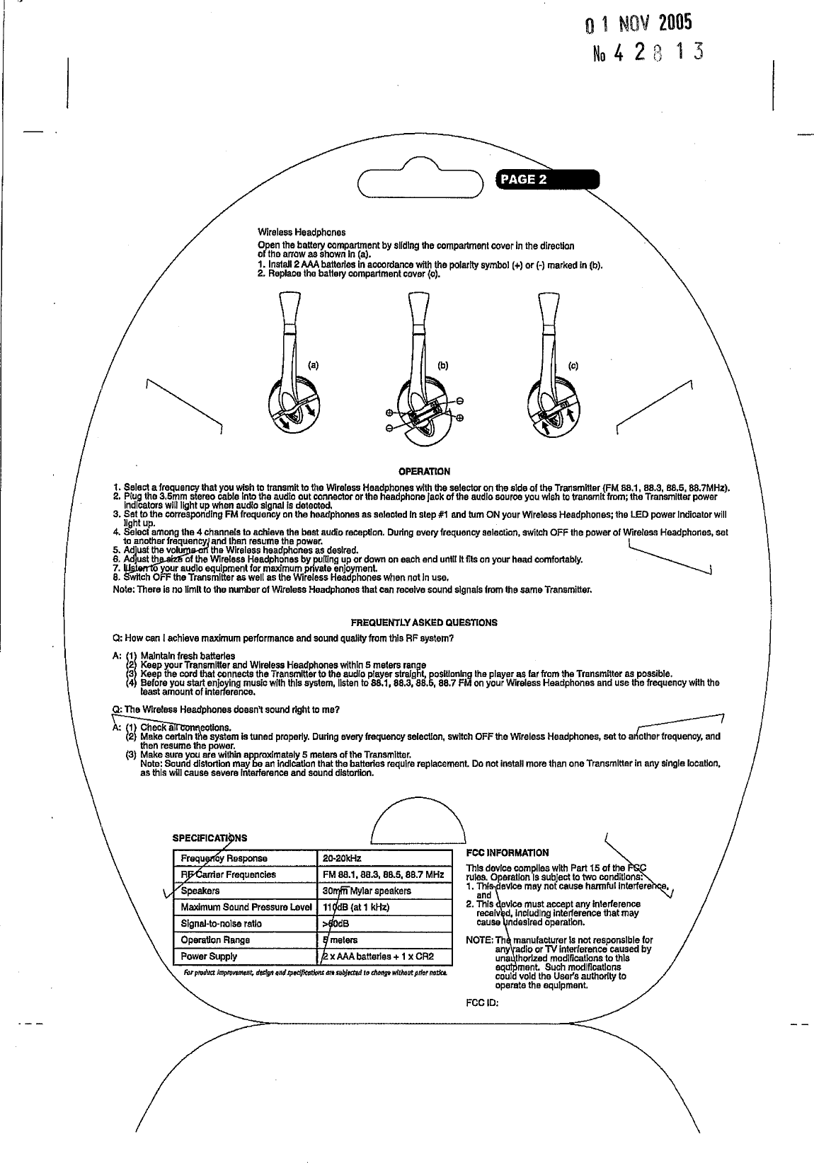 Fujikon Industrial Co., Ltd. RF WIRELESS STEREO TRANSMITTER USERS MANUAL