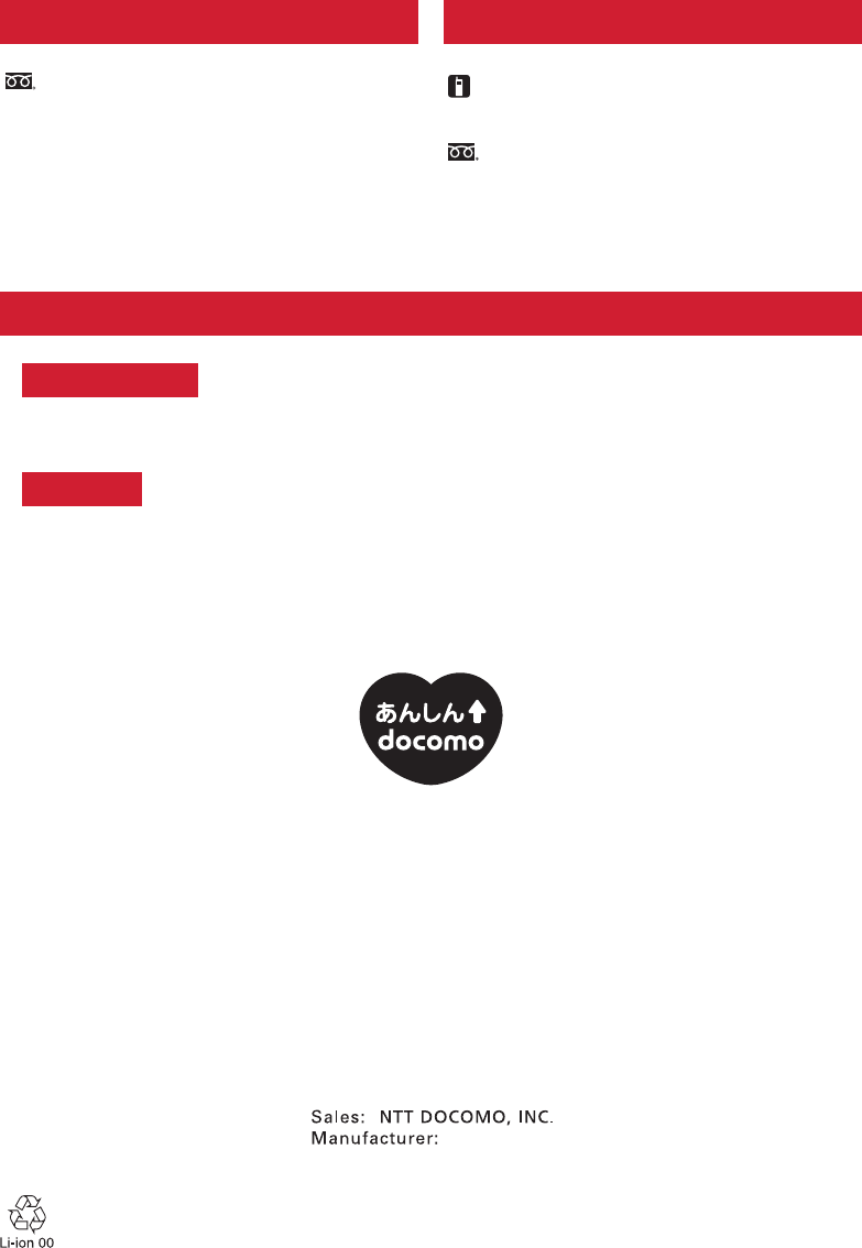 For Applications or Repairs and After-Sales Service, please contact the above-mentioned information center or the docomo shop etc. near you on the NTT