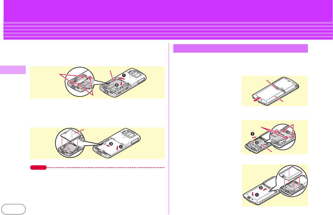 - FOMA terminal, battery pack, adapter and UIM are not waterproof. Do not use