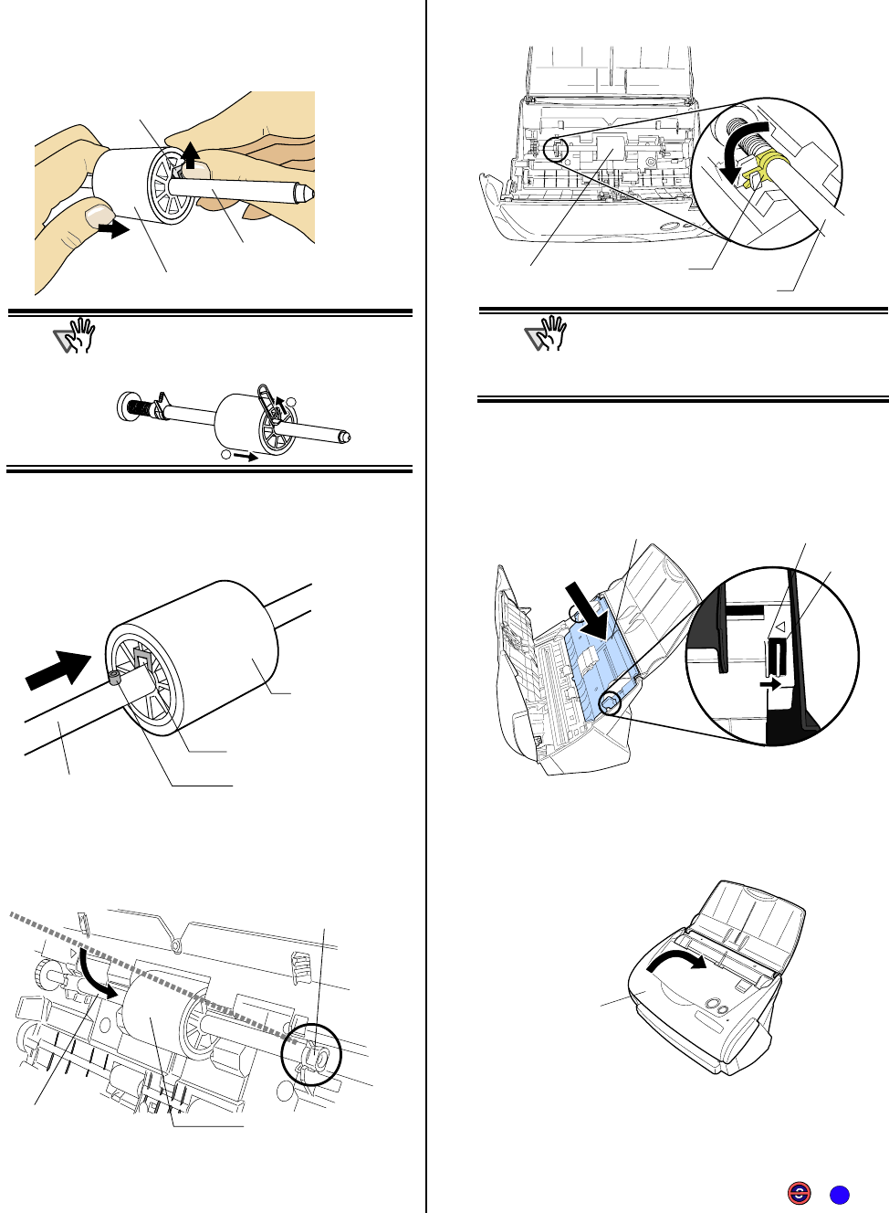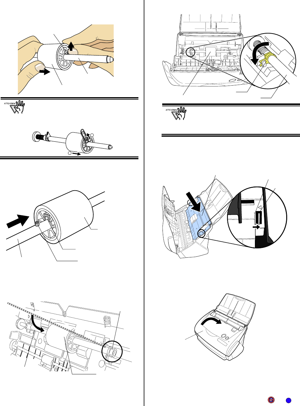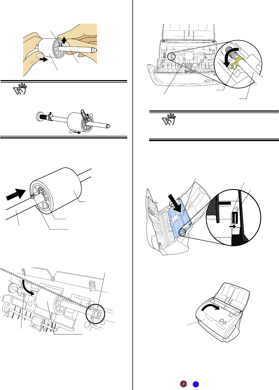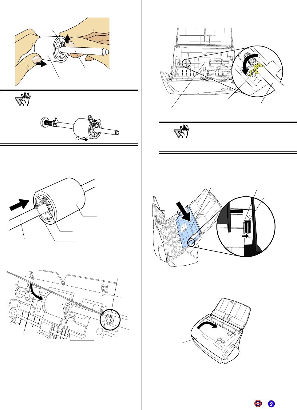 8. Instale el Rodillo de Recogida con su eje en el escáner