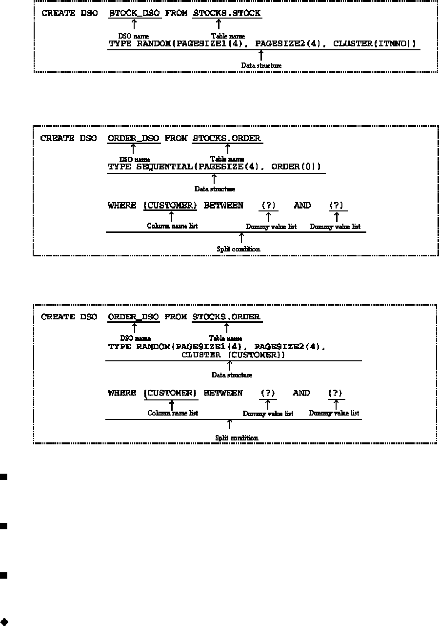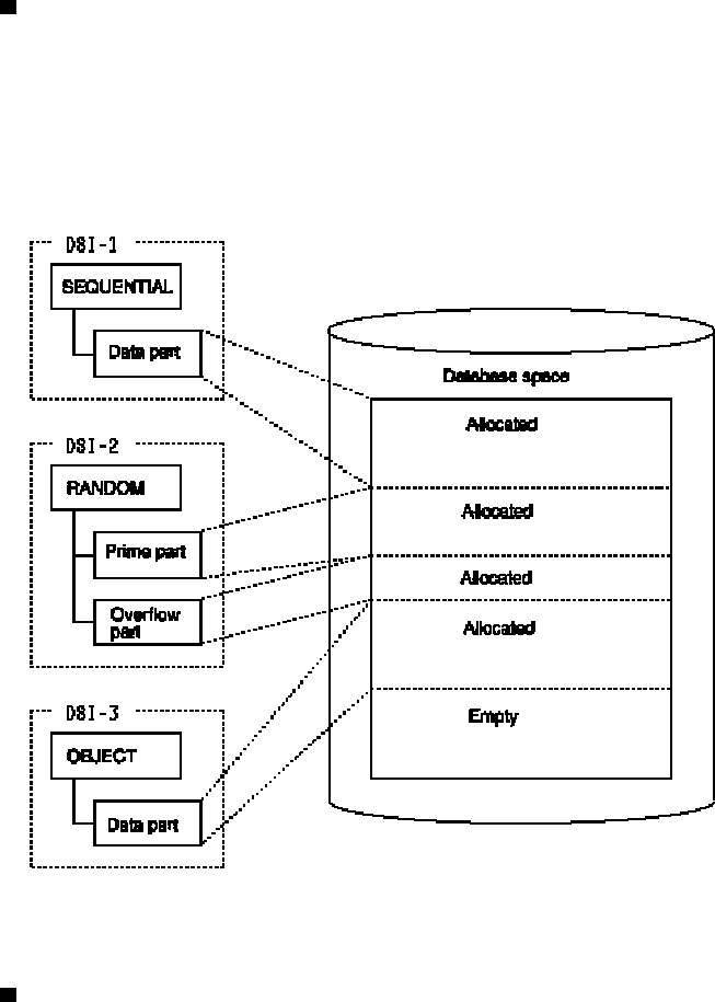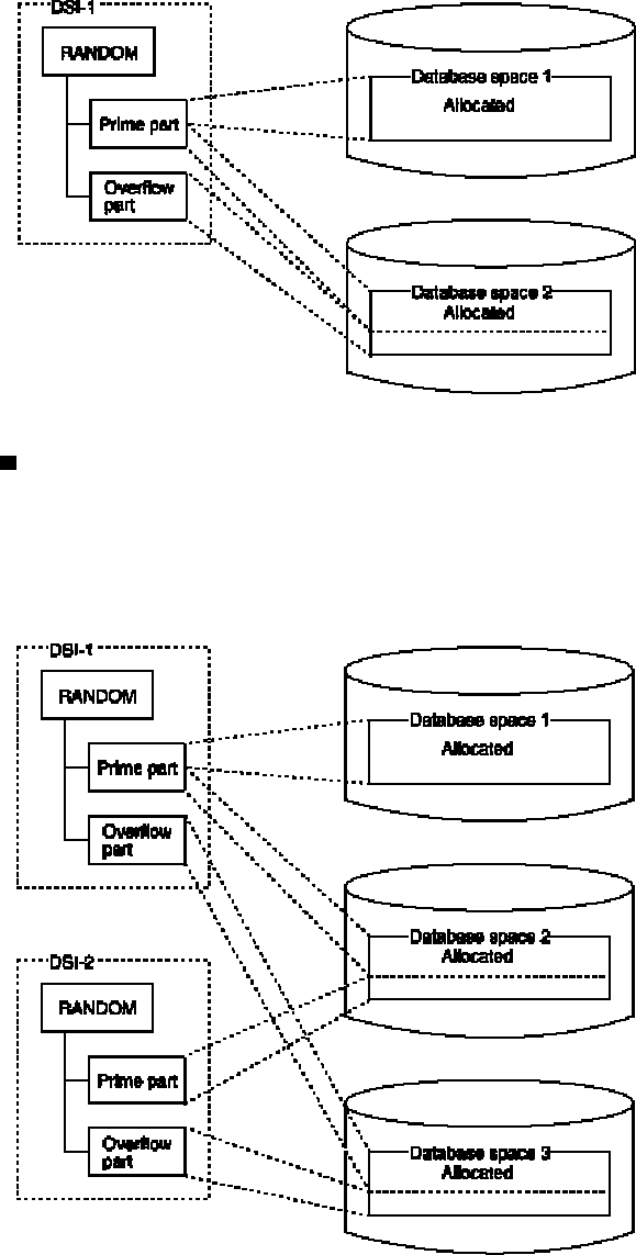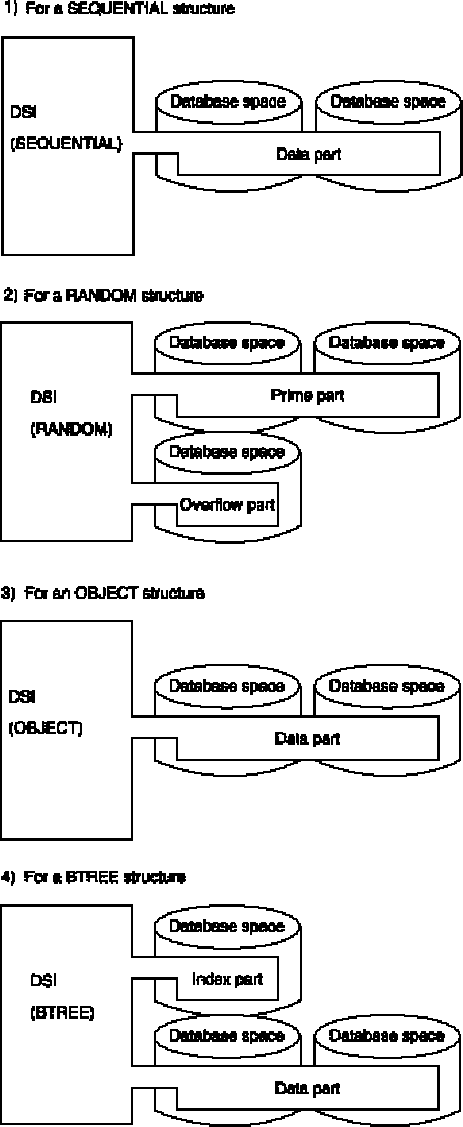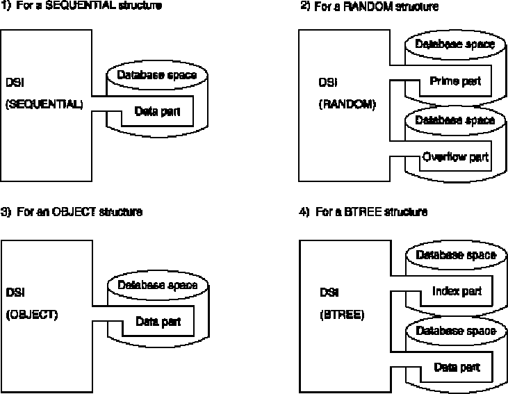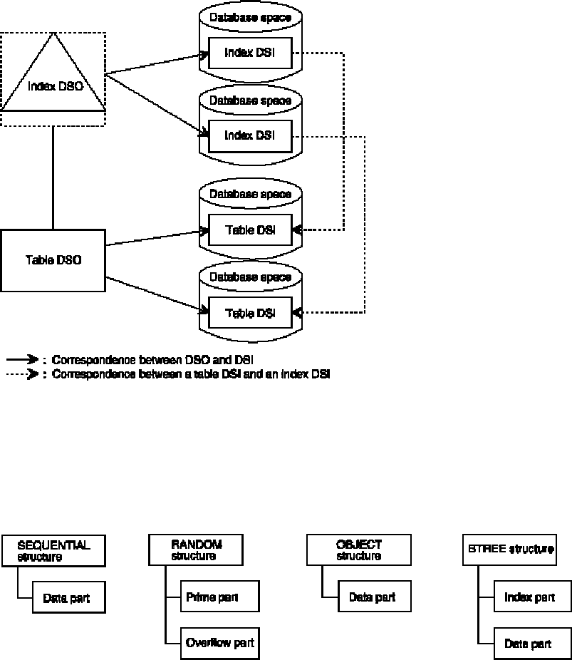 using DSO and DSI. The storage structures for base tables are RANDOM structures, SEQUENTIAL structures, and
