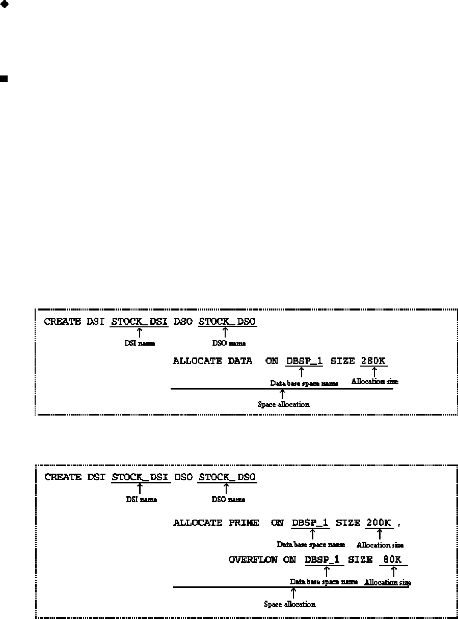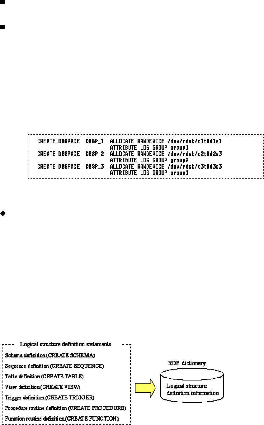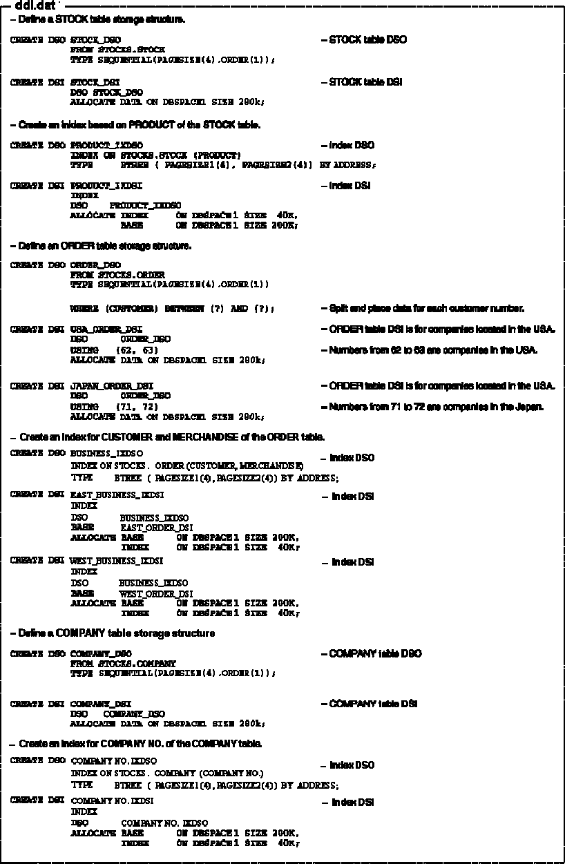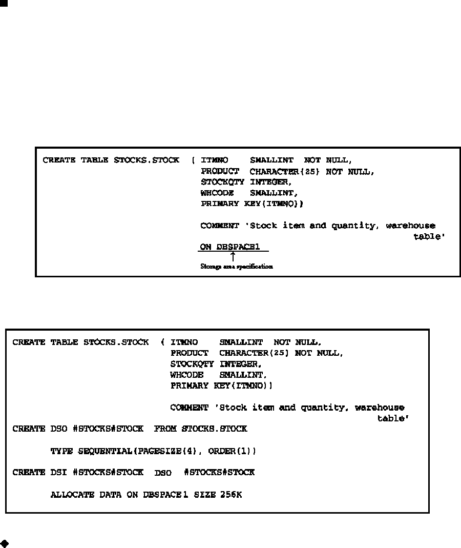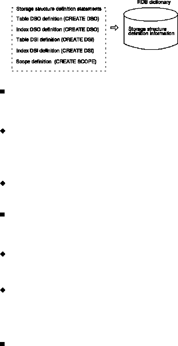 The definition of mapping between tables and database spaces. The two kinds of storage structure definition are data