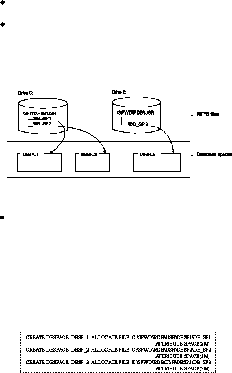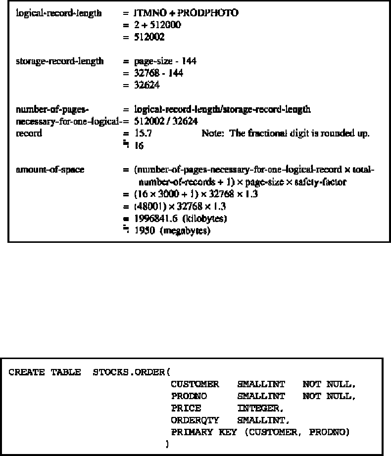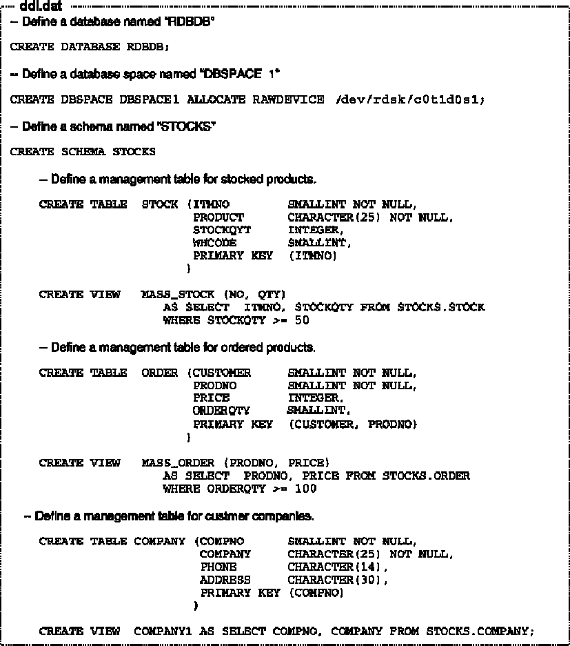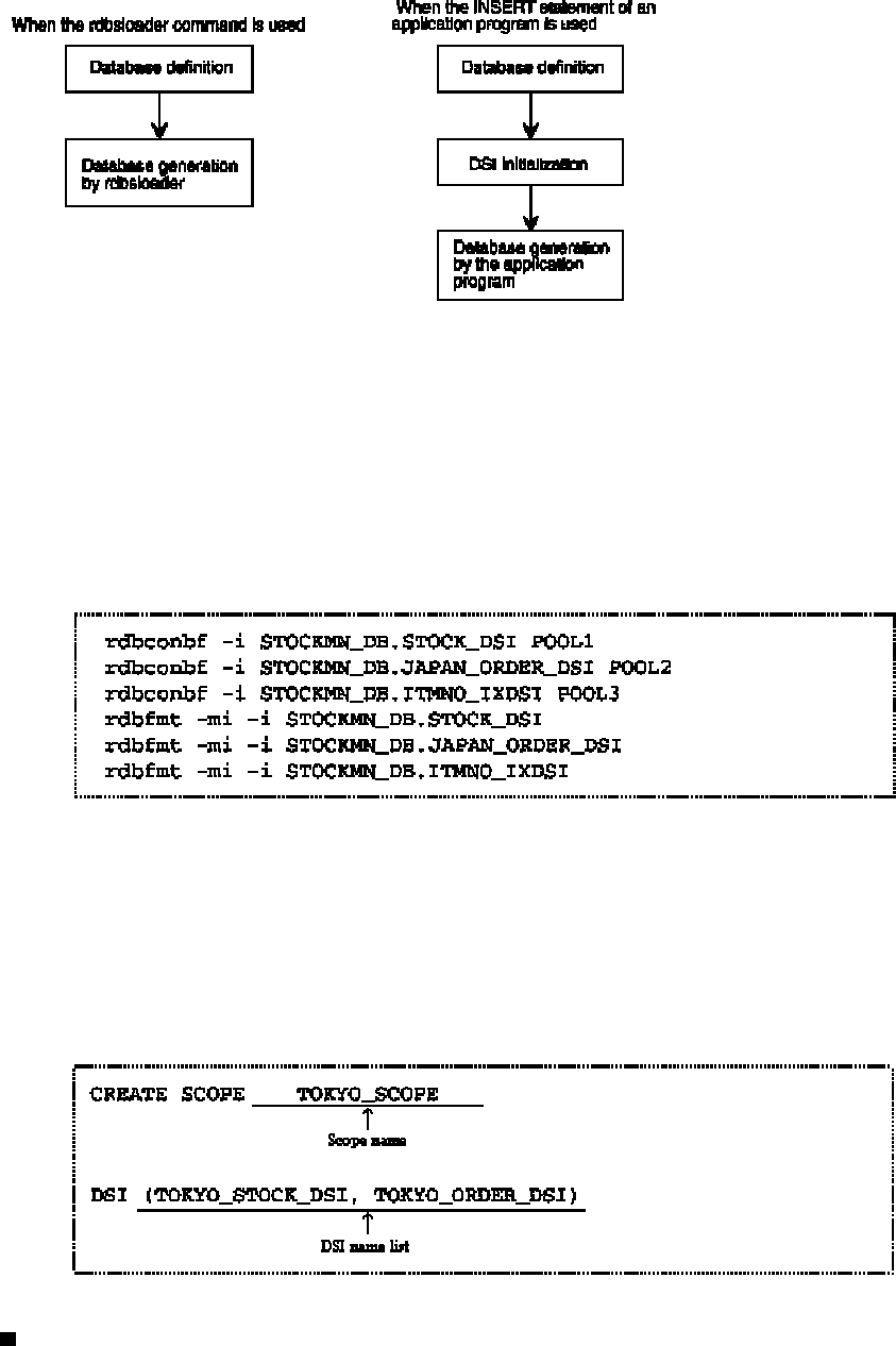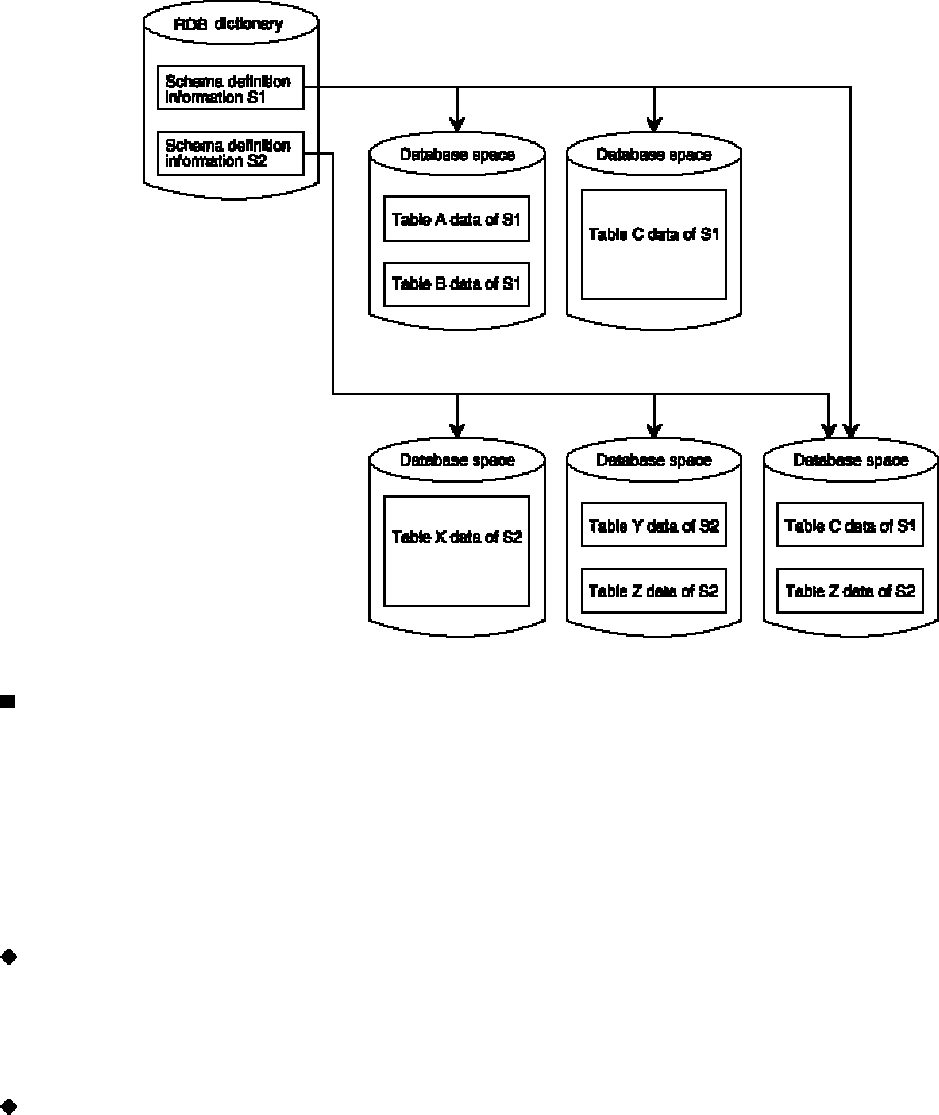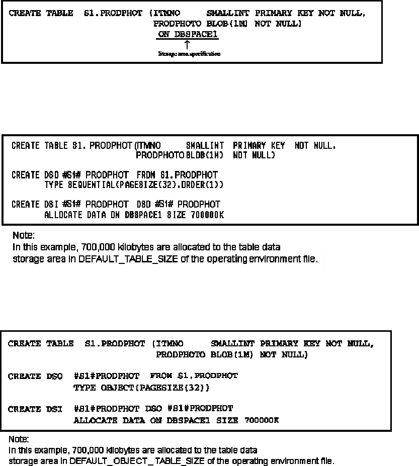 The definition of mapping between tables and database spaces. The two kinds of storage structure definition are data
