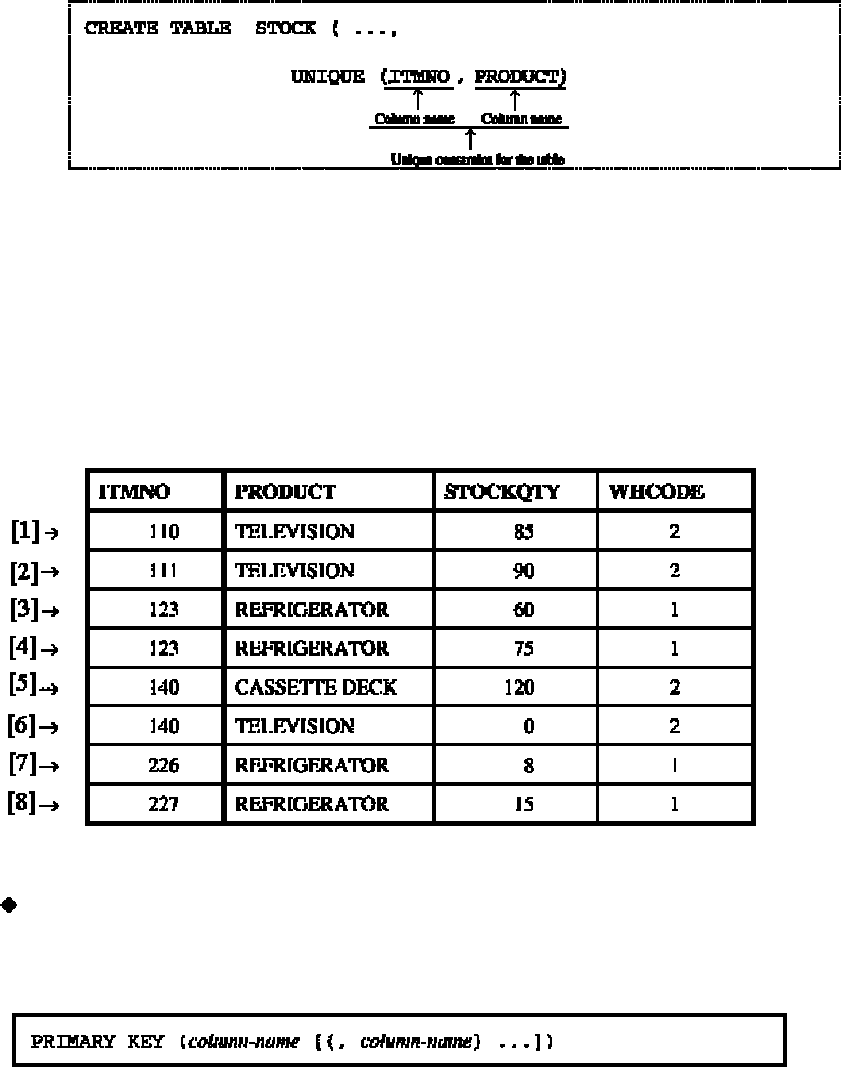A constraint on a table or column. This constraint requires that a table cannot have multiple rows having the same