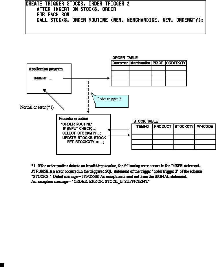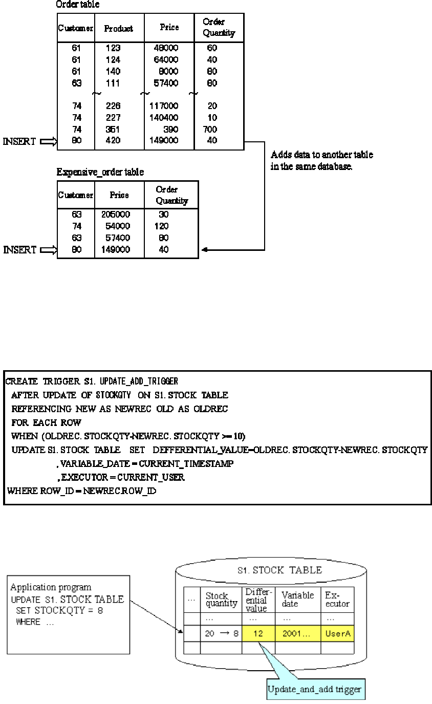 Trigger definition defines table data manipulation (insert) in conjunction with other table data manipulations (insert,