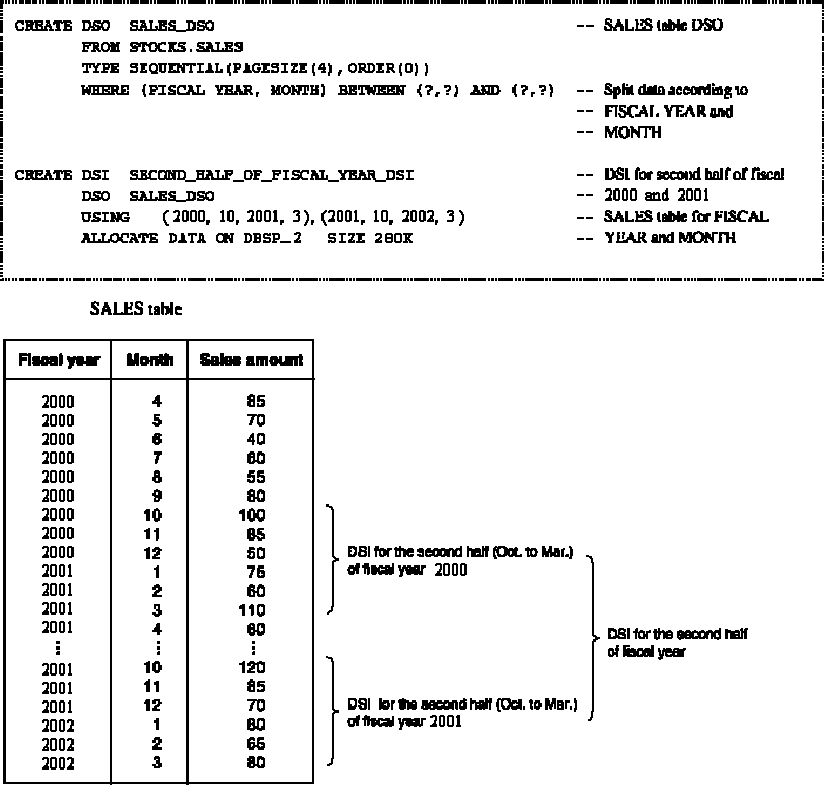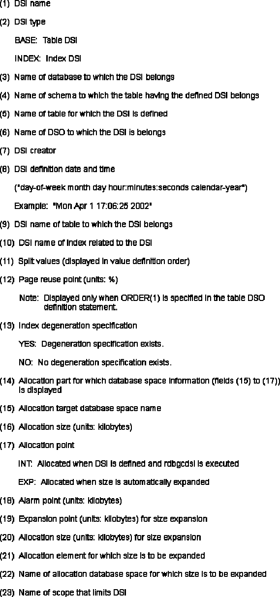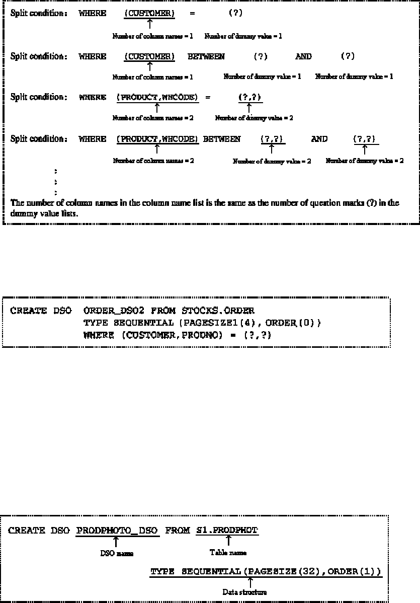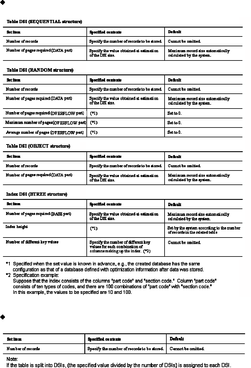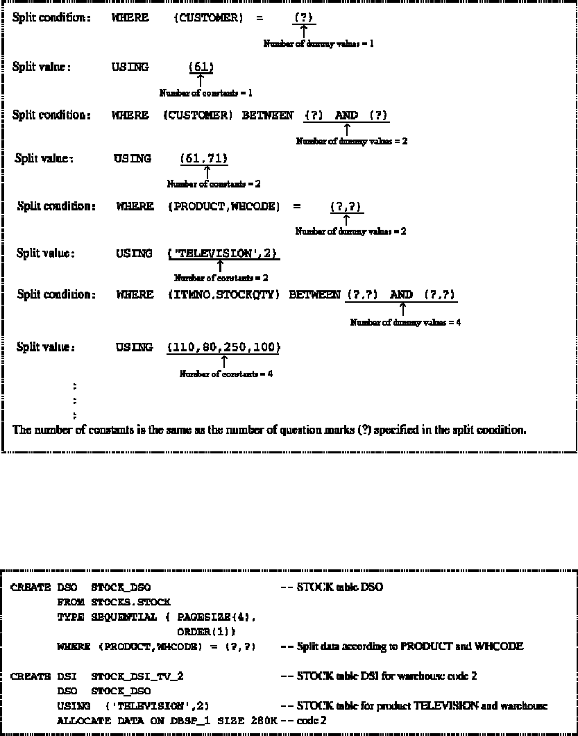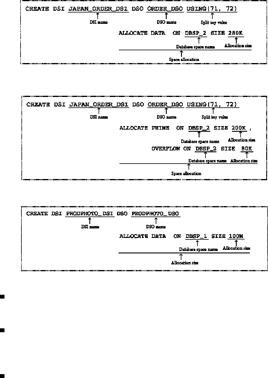 table DSI is defined. This value applies to split table operation. Data stored in the defined DSI is a row in which