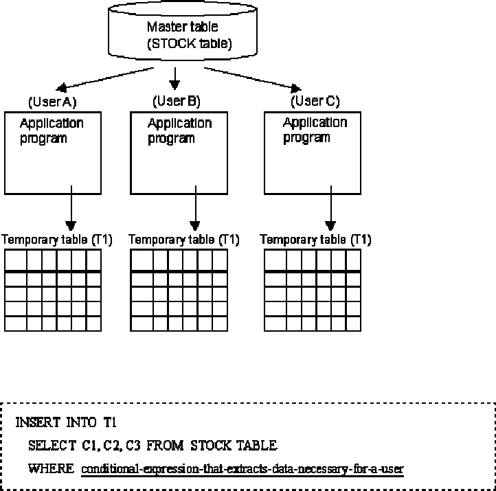 same table name. To temporarily save data being processed by an application program, a temporary table can be