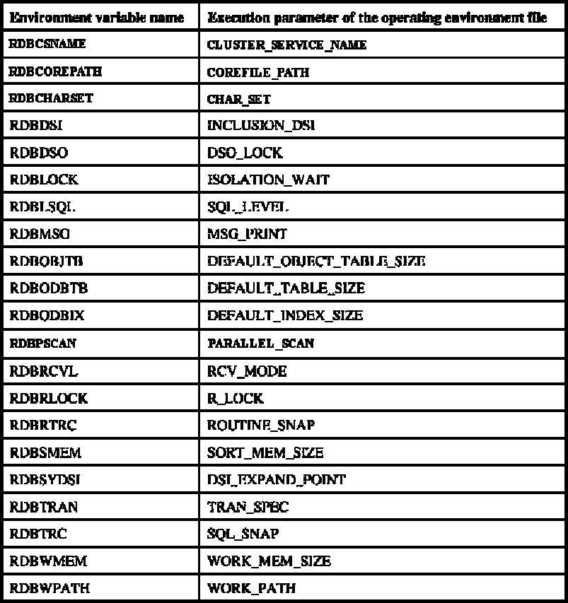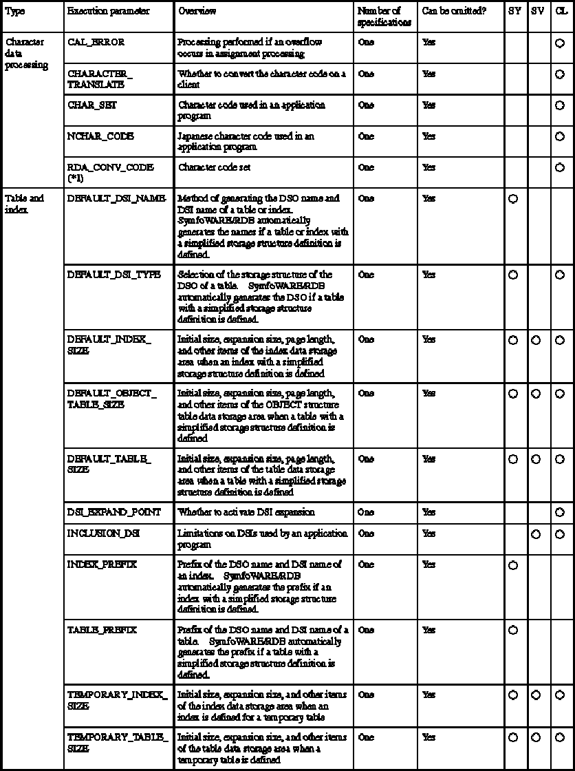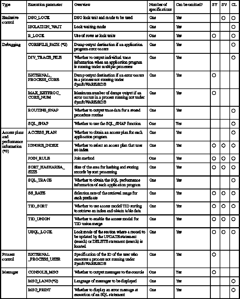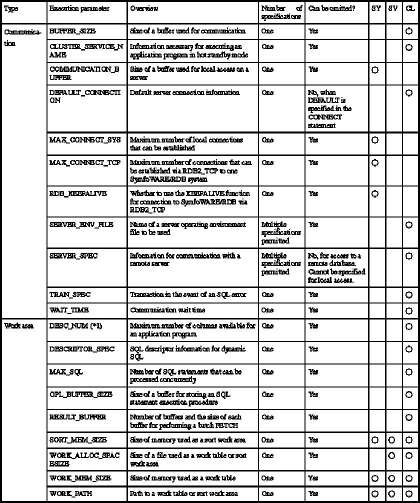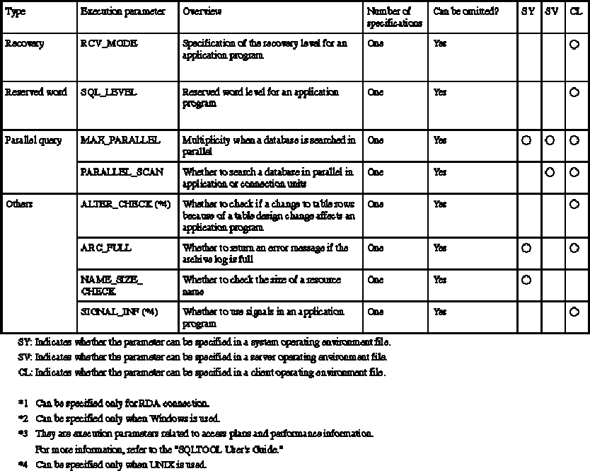 Lists parameters that can be specified in the operating environment file for tuning the application program operating