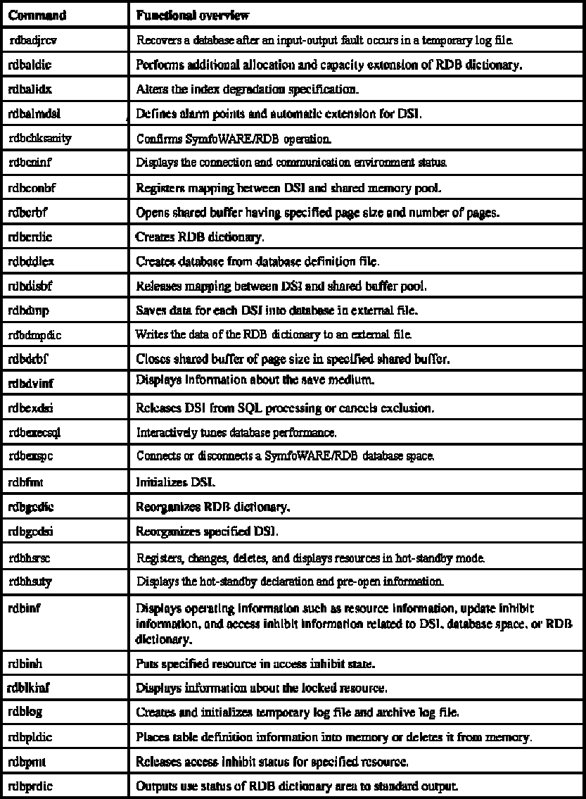 Explains the procedure from designing a SymfoWARE/RDB database up to using it.