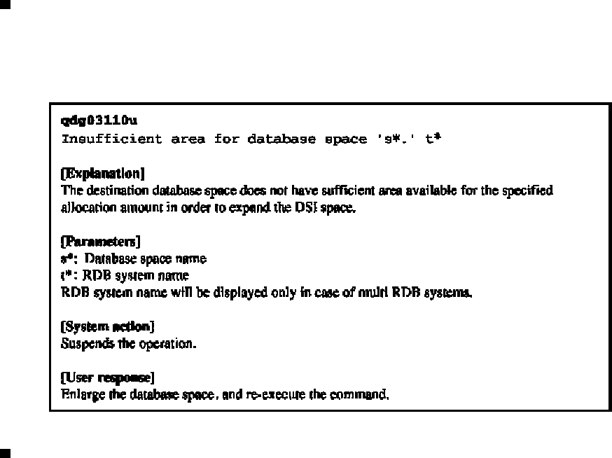 The rdbprtmsg command (RDB command) gives the meaning and user response for each displayed message.