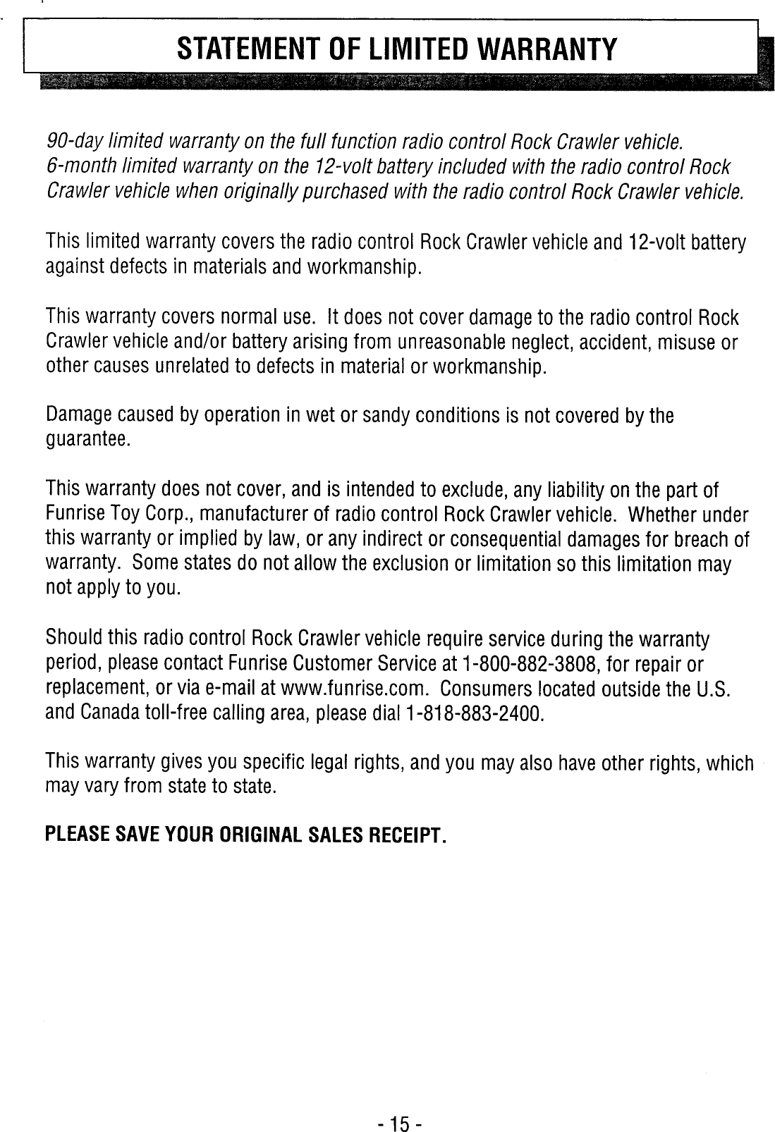 Funrise Toys FUNRISE-61T RC Car User Manual