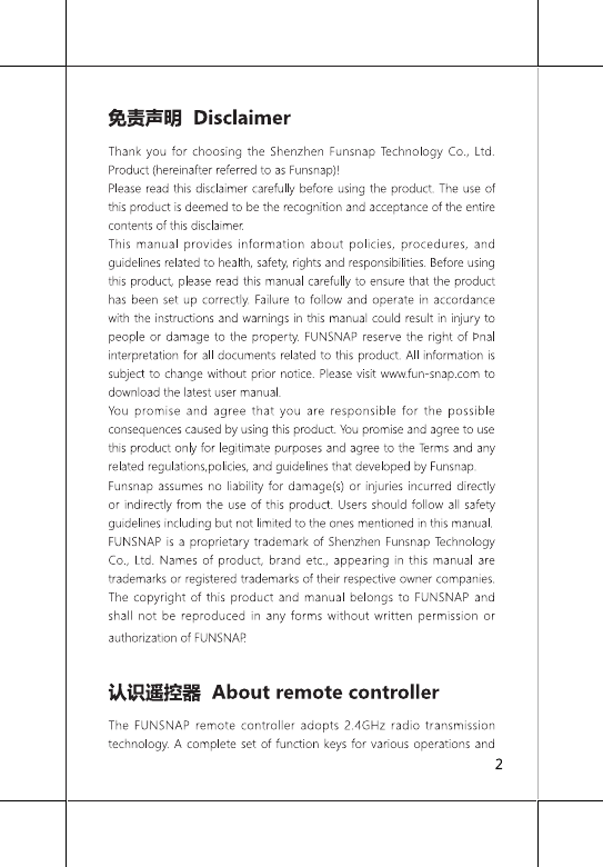 Shenzhen Funsnap Technology Co.,Ltd remote controller Users Manual