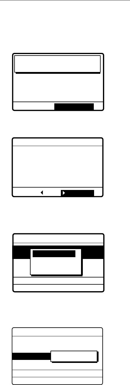 display shown at left in the figure below appears. Use the [ENT] key, and to view the