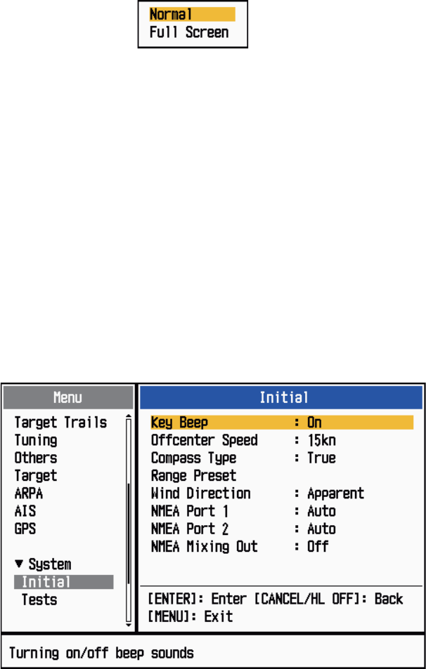 When you press the F1 or F2 key, the window for Gain/Sea/Rain indicator shows. See