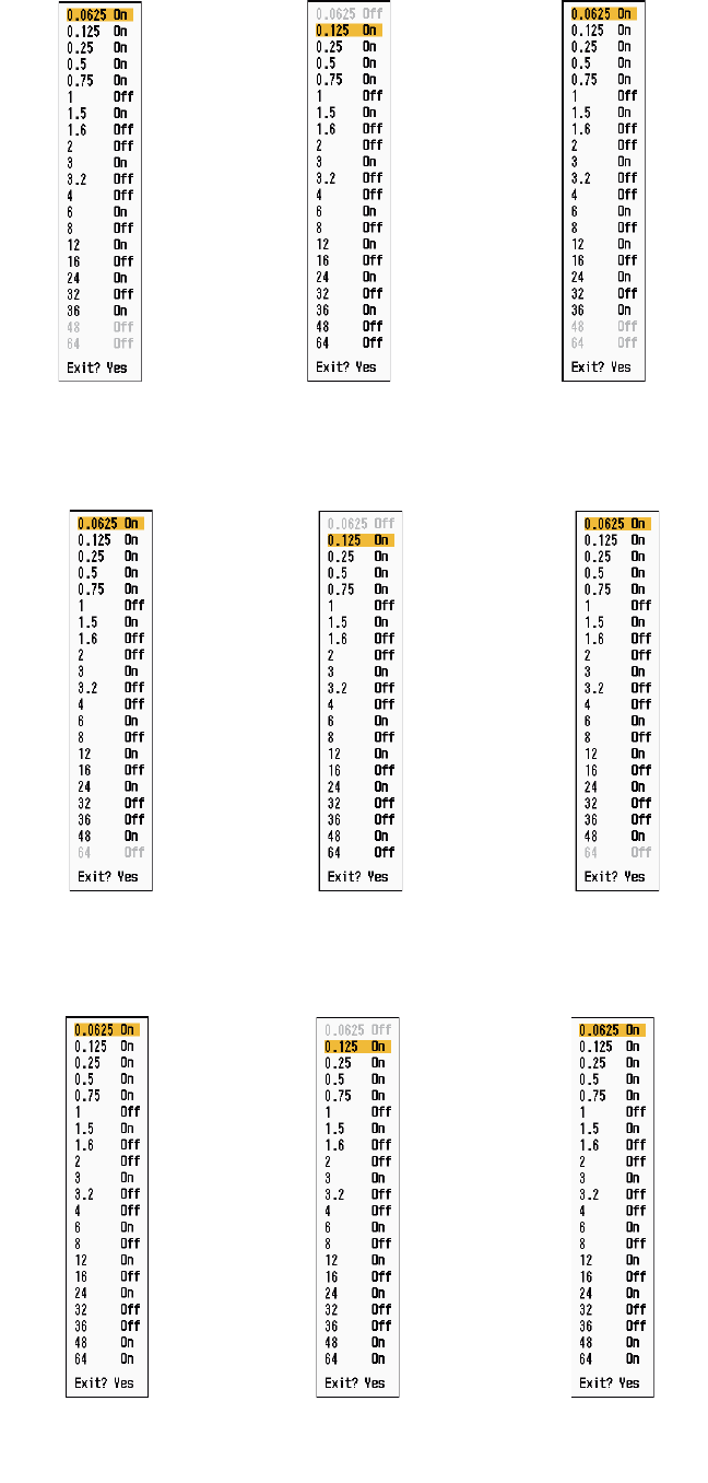 numbers which are turned off are ignored.) The selected custom setup name is shown