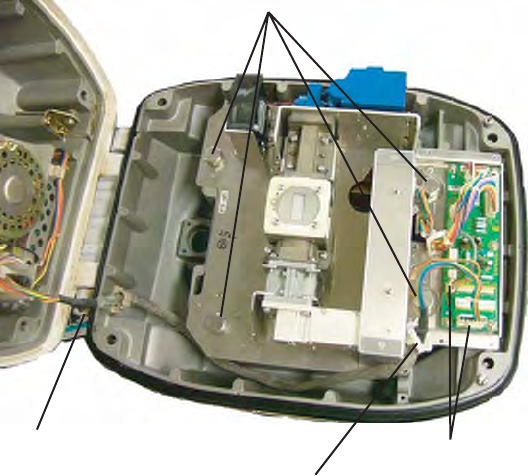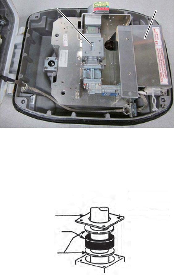 Attach two rubber cushions to the display unit as shown in the figure below. Then fix the unit