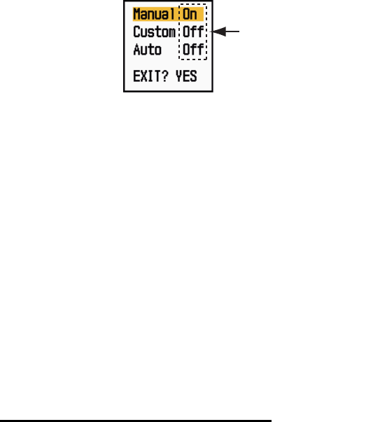 numbers which are turned off are ignored.) The selected custom setup name is shown