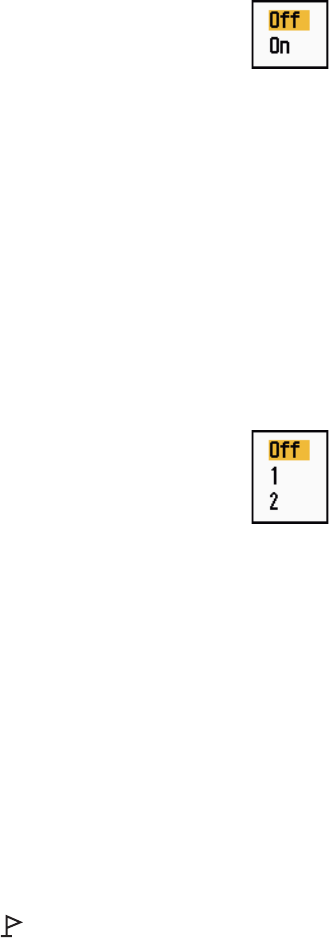 4. Use the Cursorpad (S or T) to select [Off], [1] or [2] then press the ENTER key.