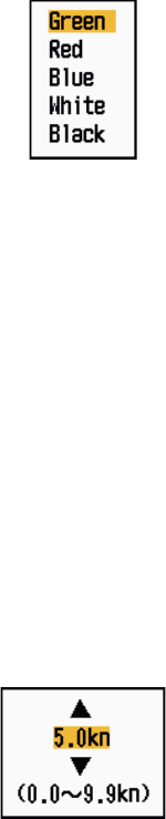4. Use the Cursorpad (S or T) to select speed (0.0 - 9.9 kn) and press the ENTER