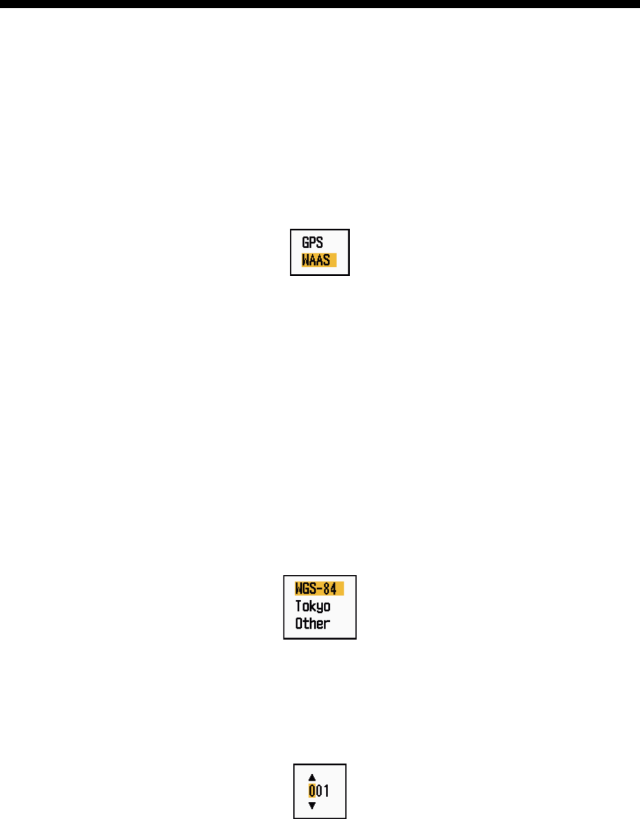 5. Use the Cursorpad (S or T) to select [WAAS No] and press the ENTER key.