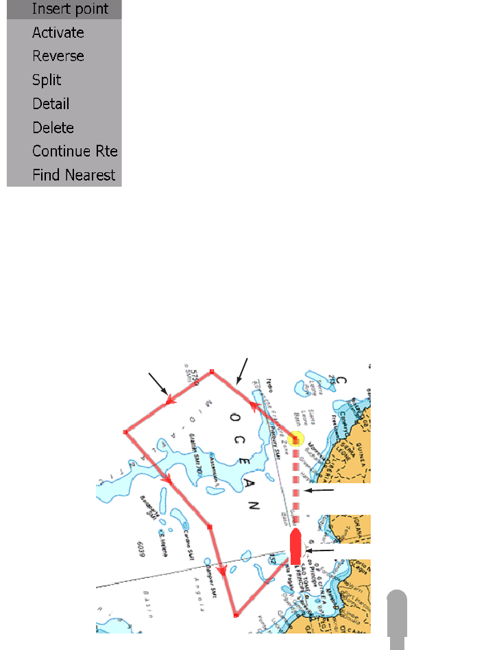 The dotted line from own vessel to the point is erased from the screen. If you want to