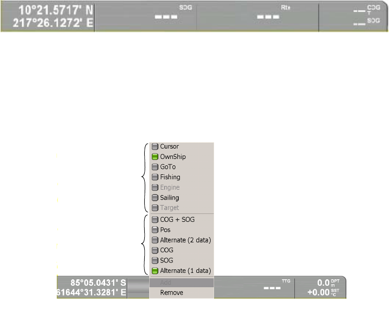 boxes, use the DATA/VOL key. NavData can be configured with the NavData pop-up