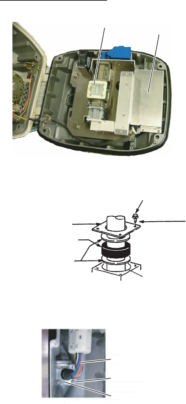 3. Pass the signal cable with connector through the bottom of the antenna unit chas-