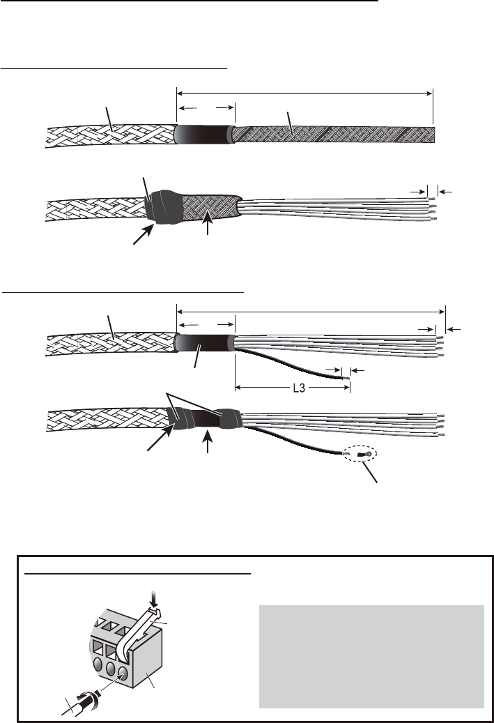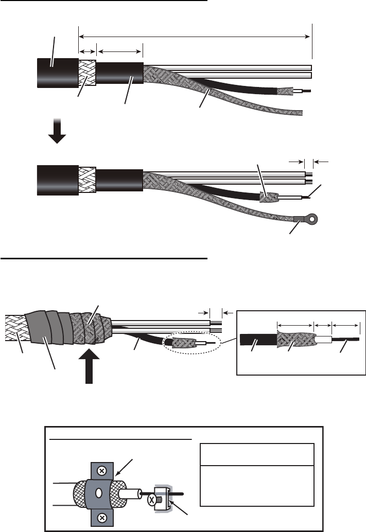 1. Remove the armor of the cable by the amount shown in the figure below.