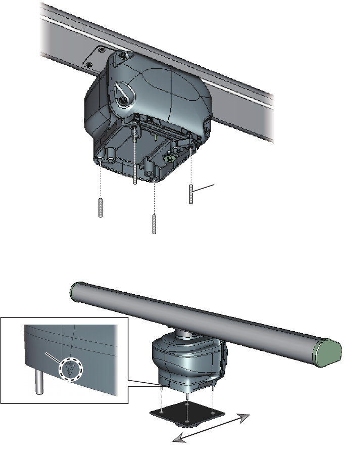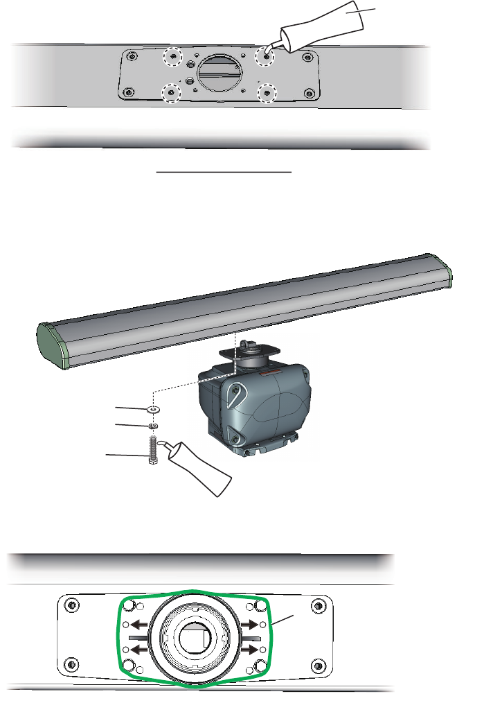 3. Insert four stud bolts (M1260) into the threaded holes in the antenna unit.