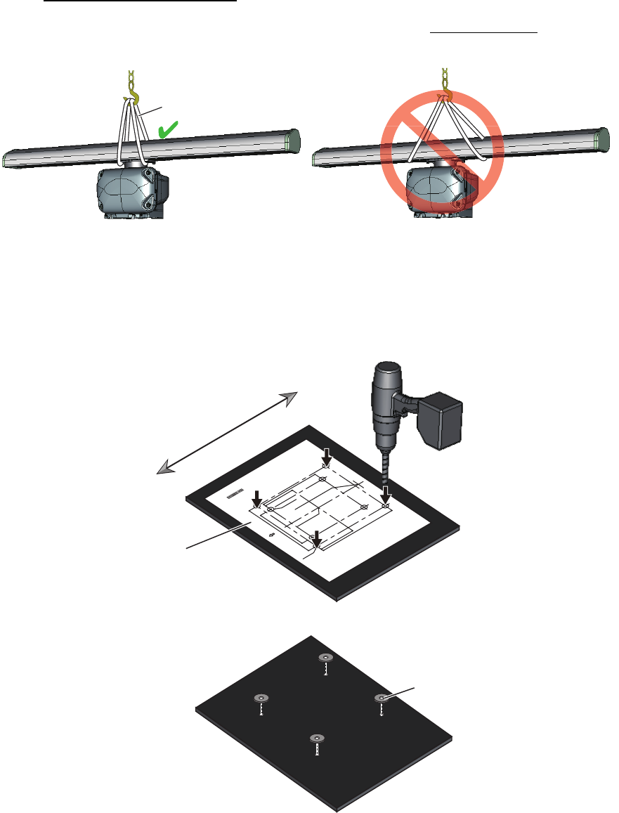 1. Use the mounting template to drill four fixing holes in the mounting location.