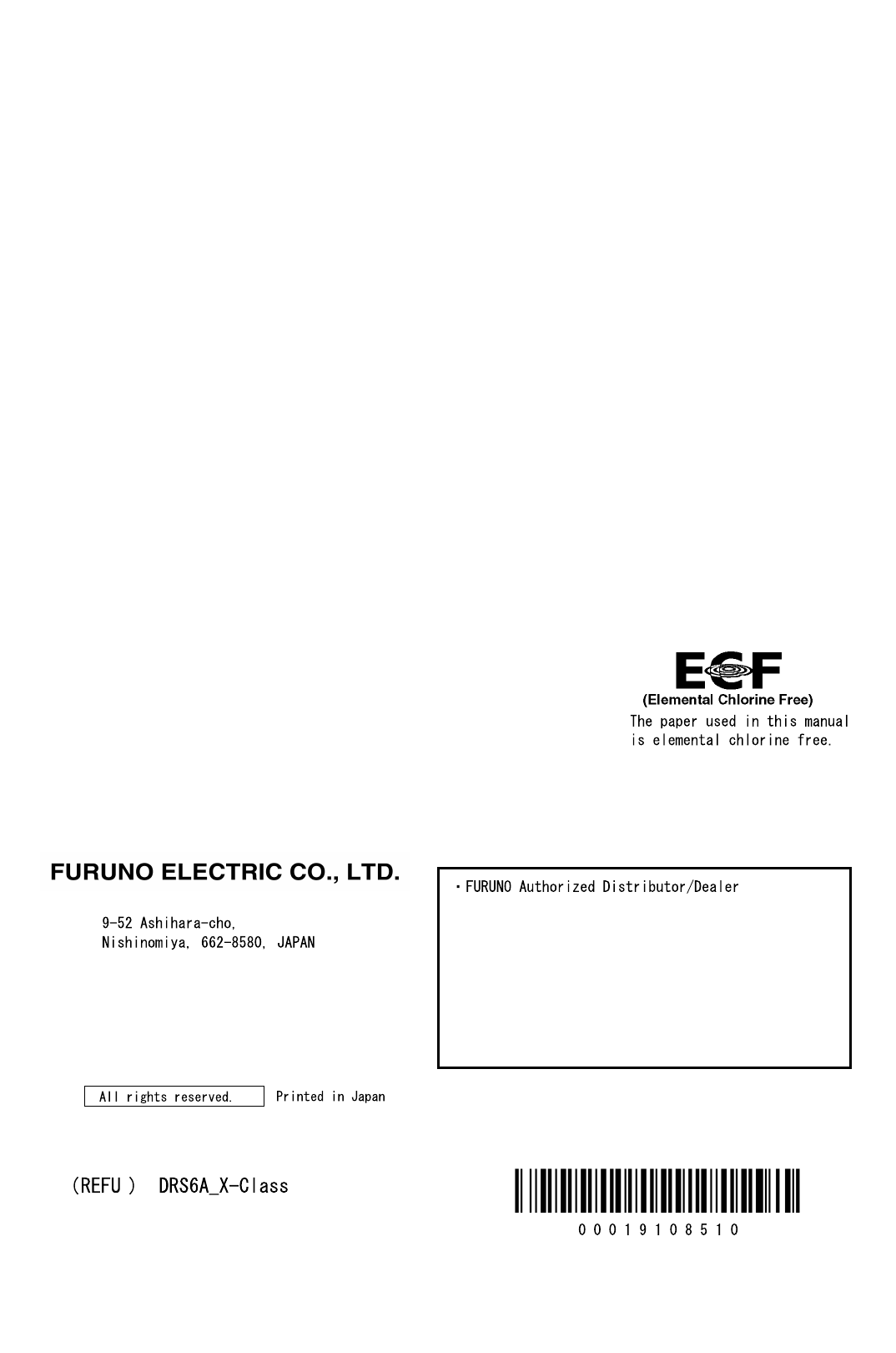 B'dan, Furuno Electric Co., Ltd., niddikjara li msemmija hawn fuq-tip ta' tagħmir
