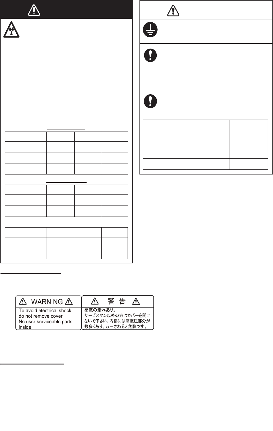 Fire, electrical shock or serious