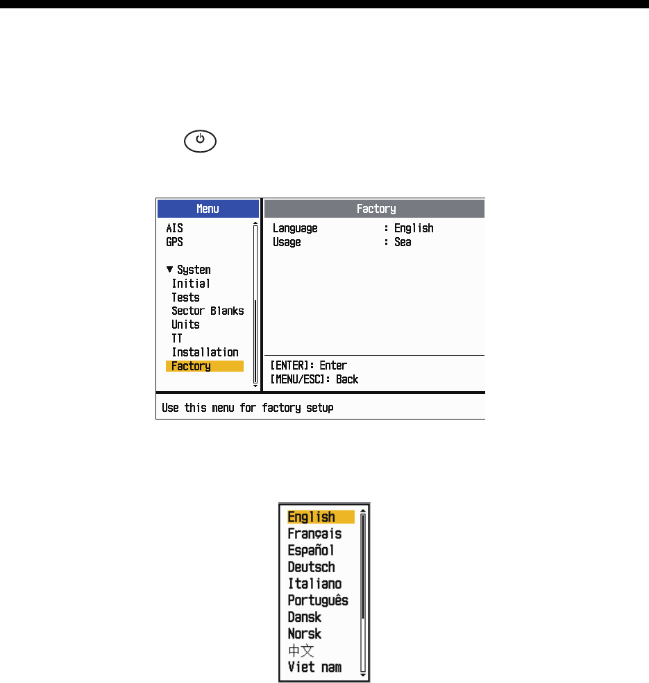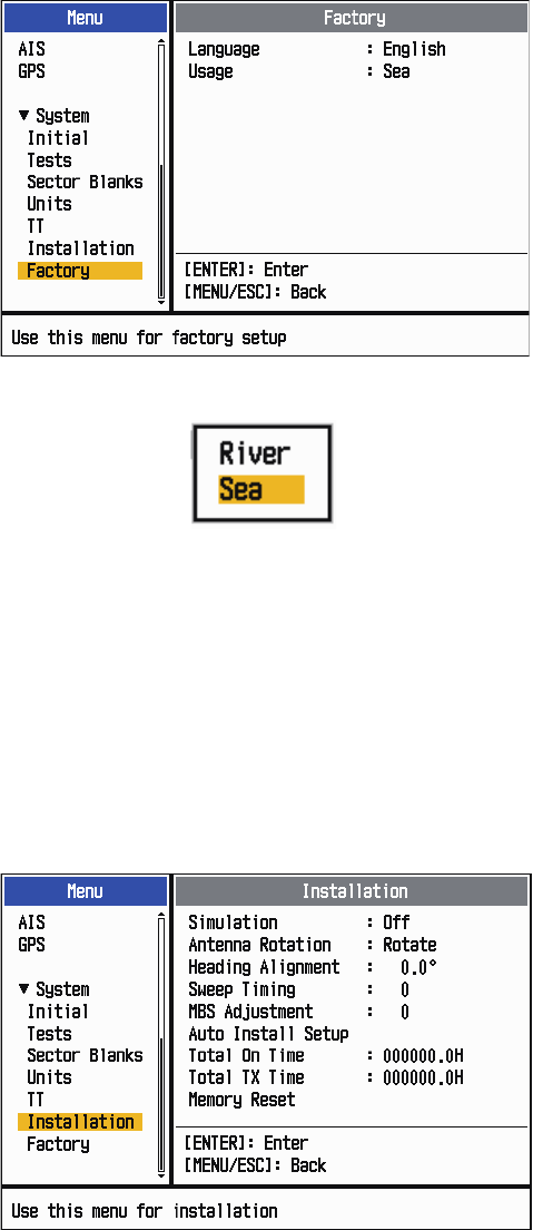 [Installation] and [Factory]: For use by the installer. See the Installation Man-