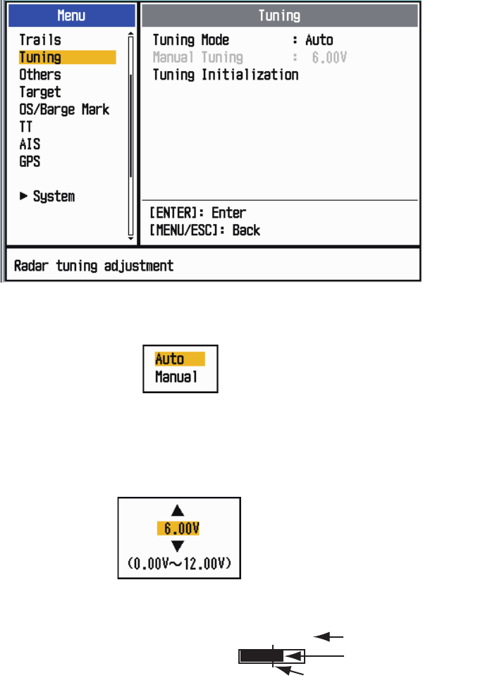 6. Use the Cursorpad ( or ) to select [Manual Tuning] and press the ENTER key