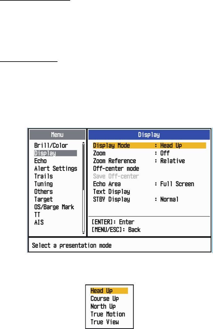 This radar has the display modes shown below. All modes except head-up require a