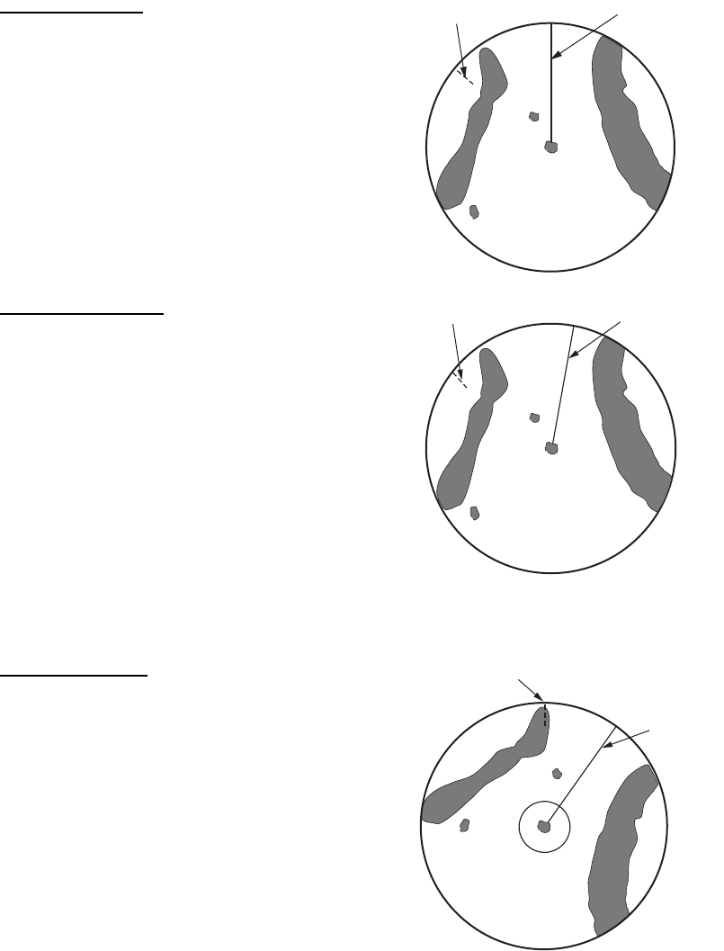 marker disappears. The display for heading is XXX.X and the alarm sounds. The mes-