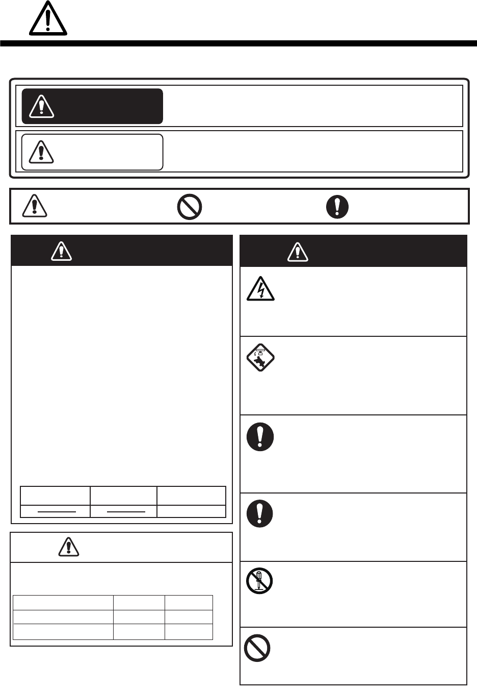 Warning, Caution Mandatory Action