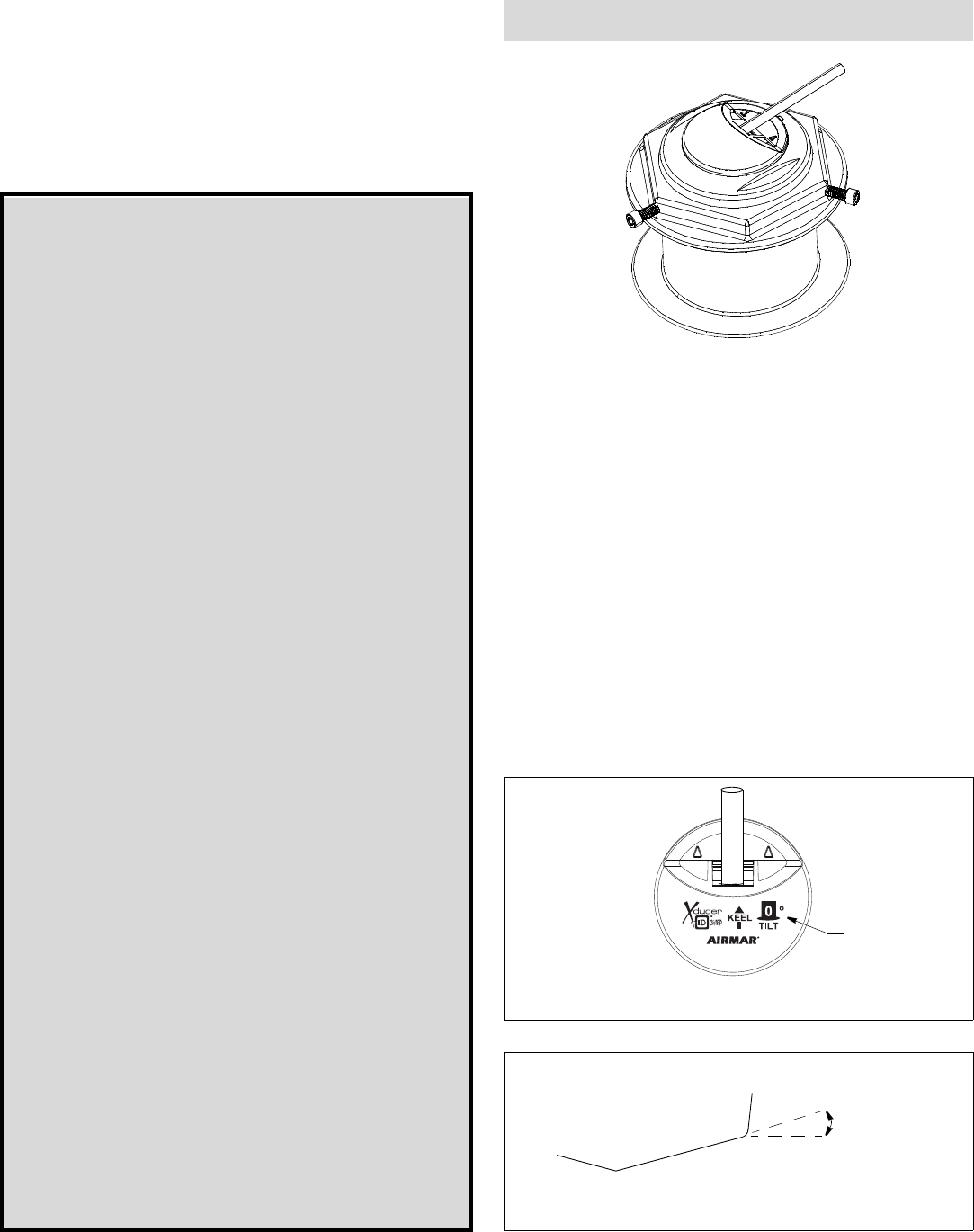 your hull at the selected mounting location. The tilt angle is printed