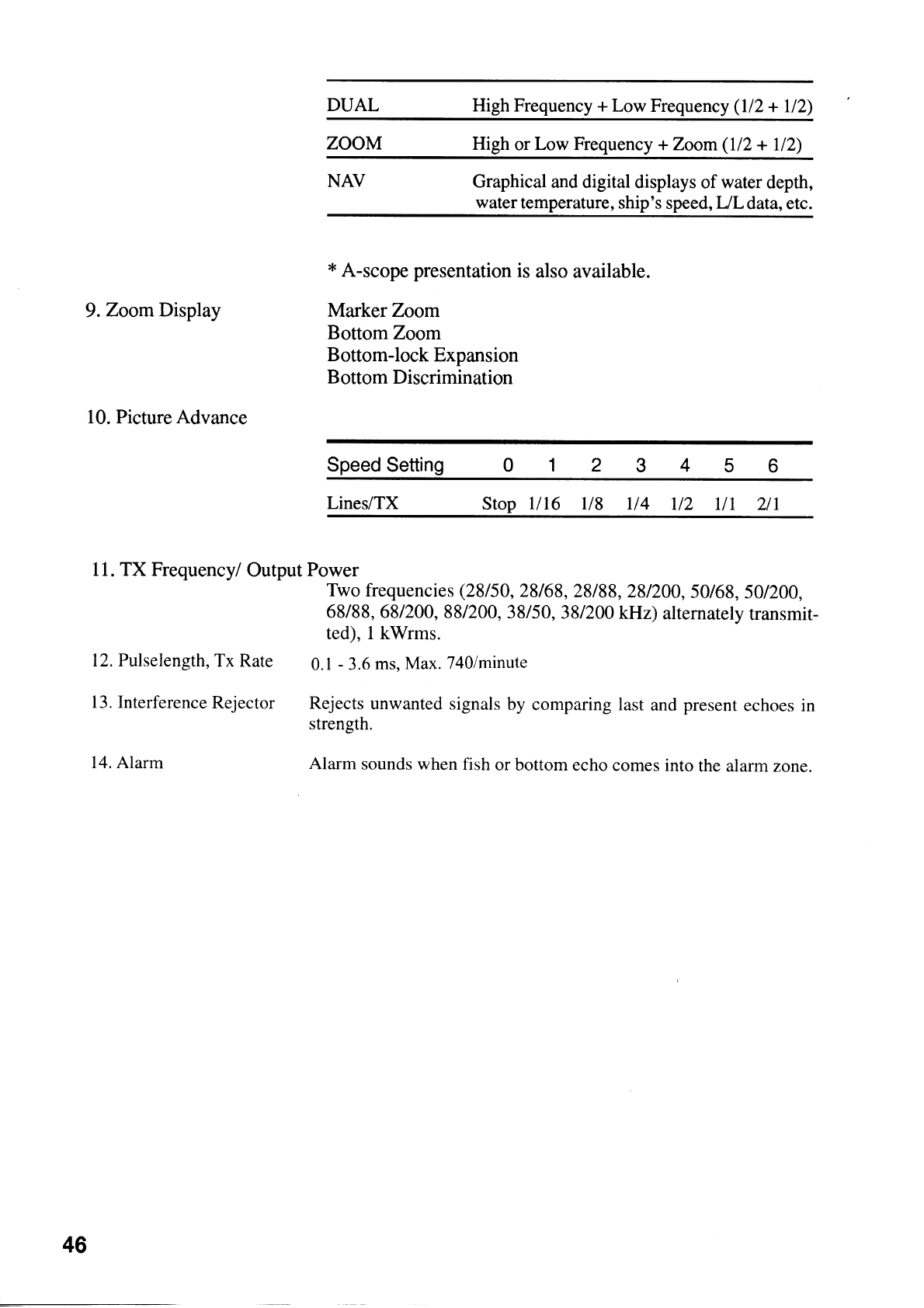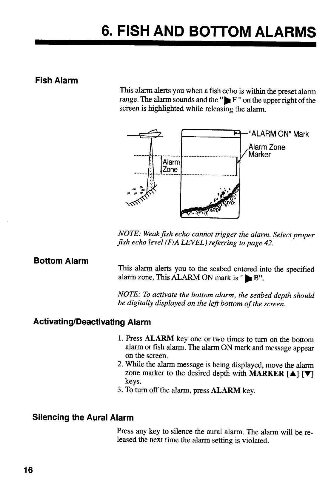- 6. FISH AND BOTTOM ALARMS