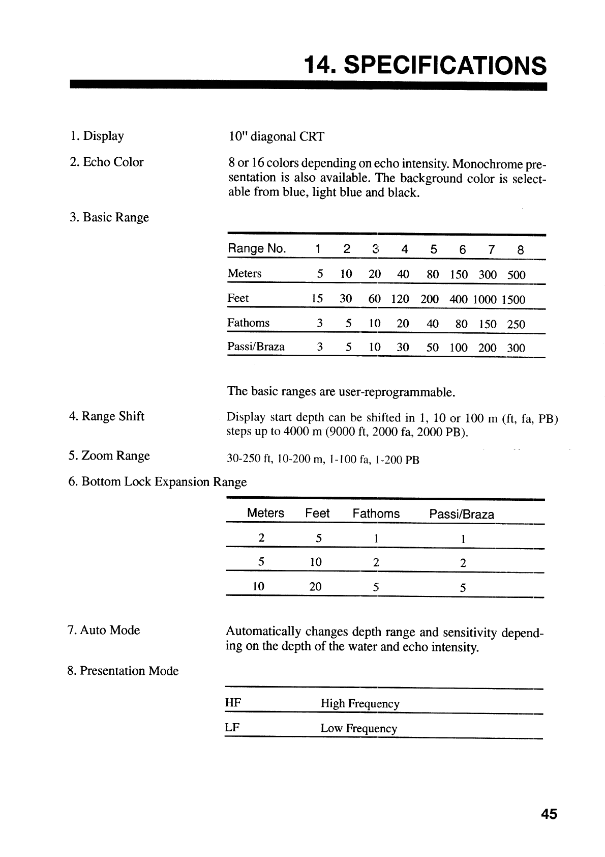 - 14. SPECIFICATIONS