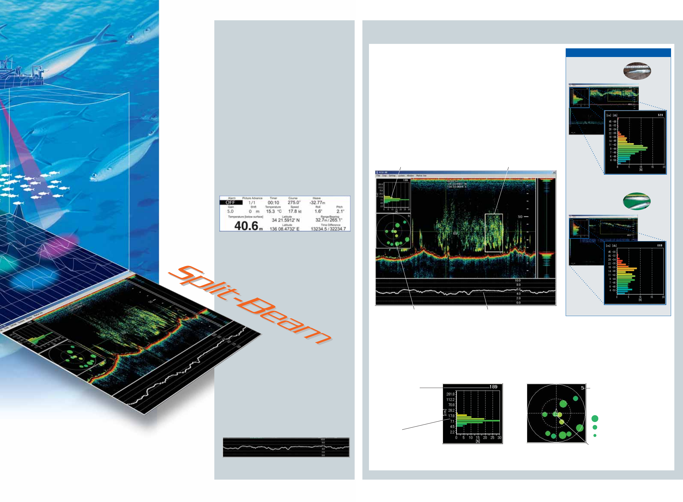 distribution of a targeted fish school. Split-beam allows you to analyze