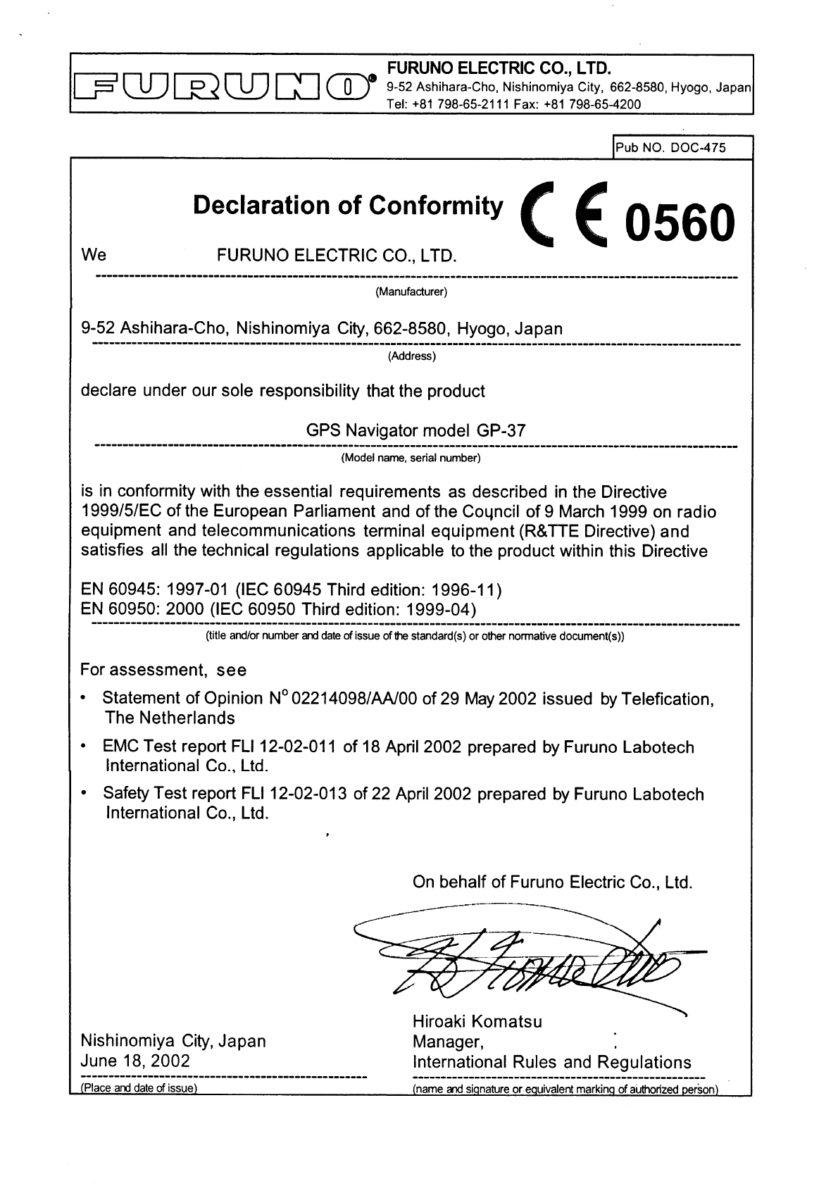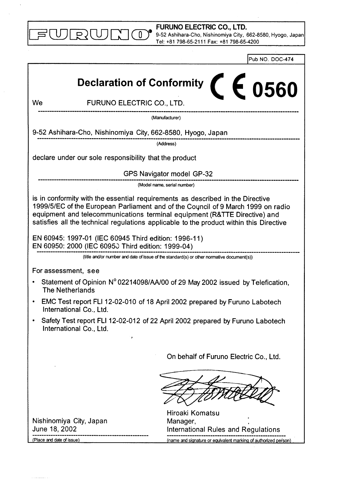 - Declaration of Conformity