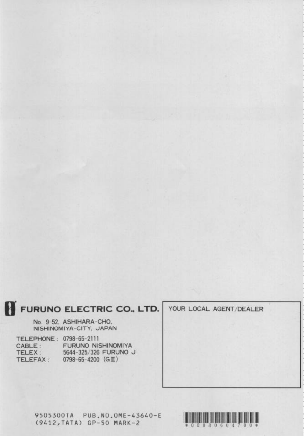 Furuno Gps Navigator Gp 50 Mark 2 Users Manual Wednesday, April 30, 2003.max
