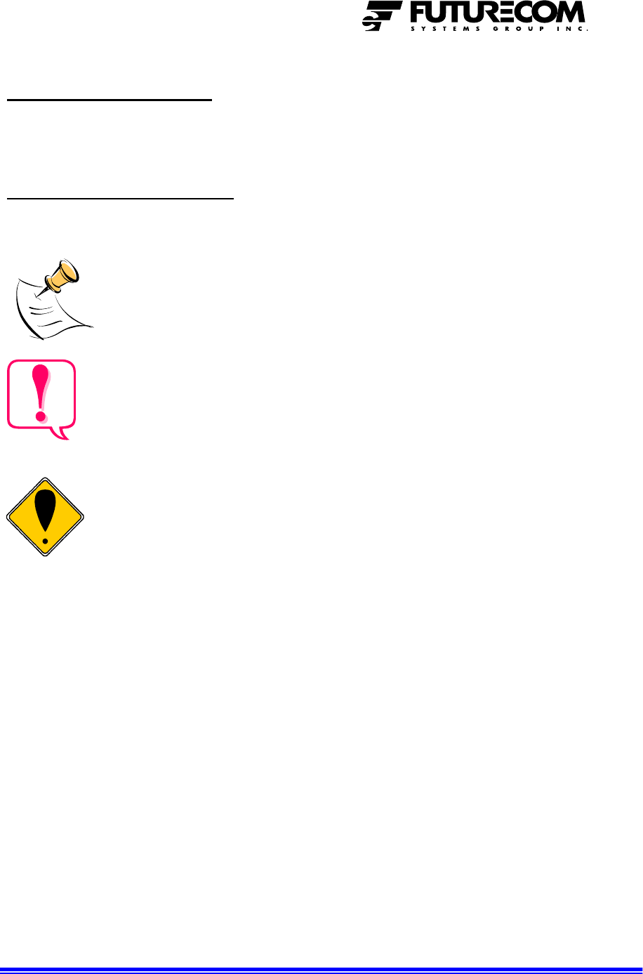This document may contain technical inaccuracies or typographical errors. Futurecom Systems Group Inc.