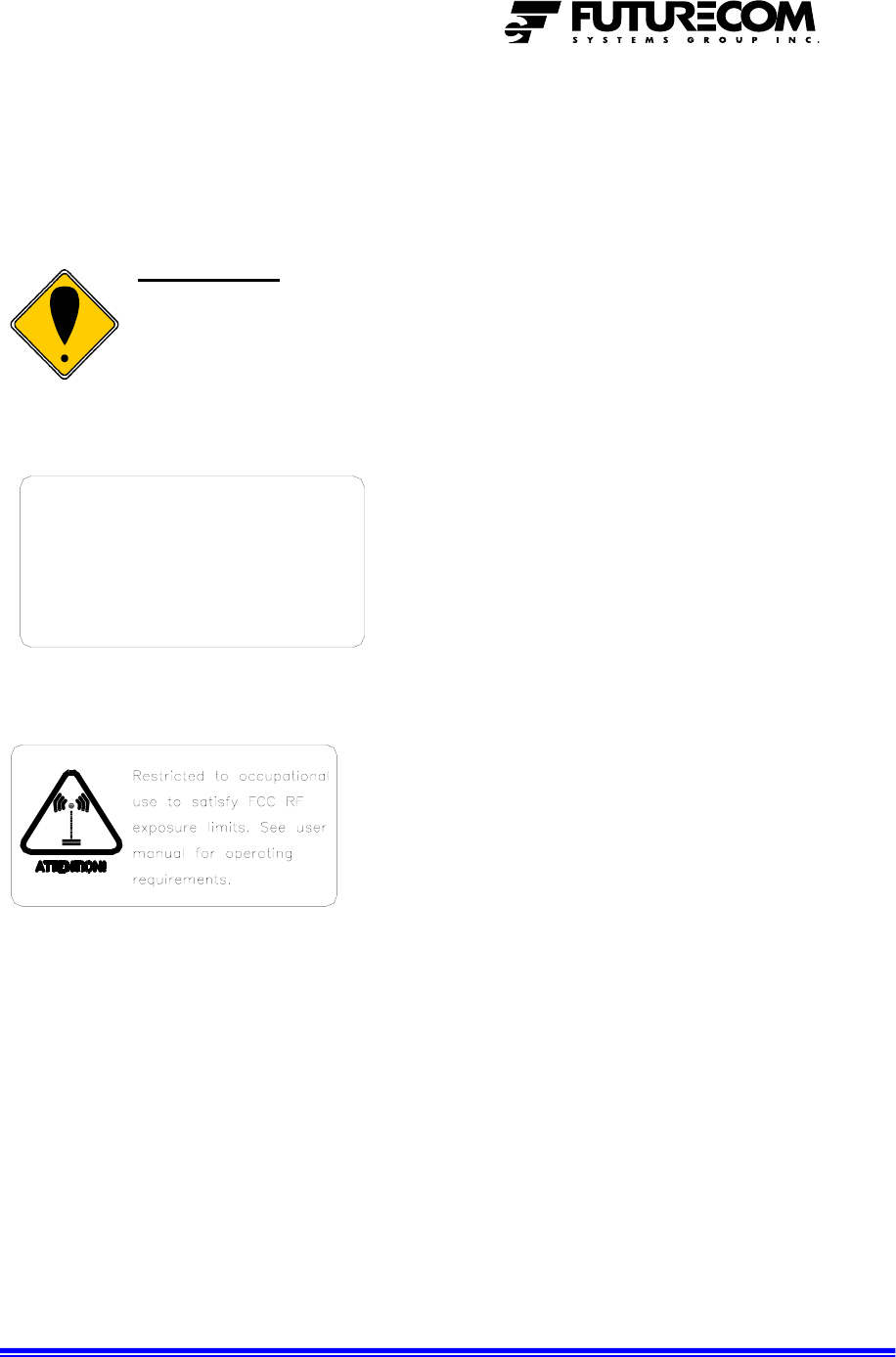 Changes or Modifications not expressly approved by Futurecom Systems Group Inc.