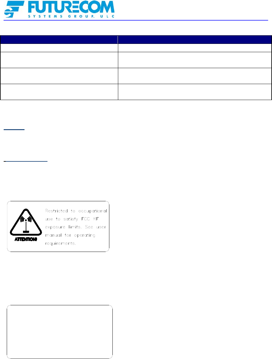 the express written permission of Futurecom. The purchase of Futurecom products shall