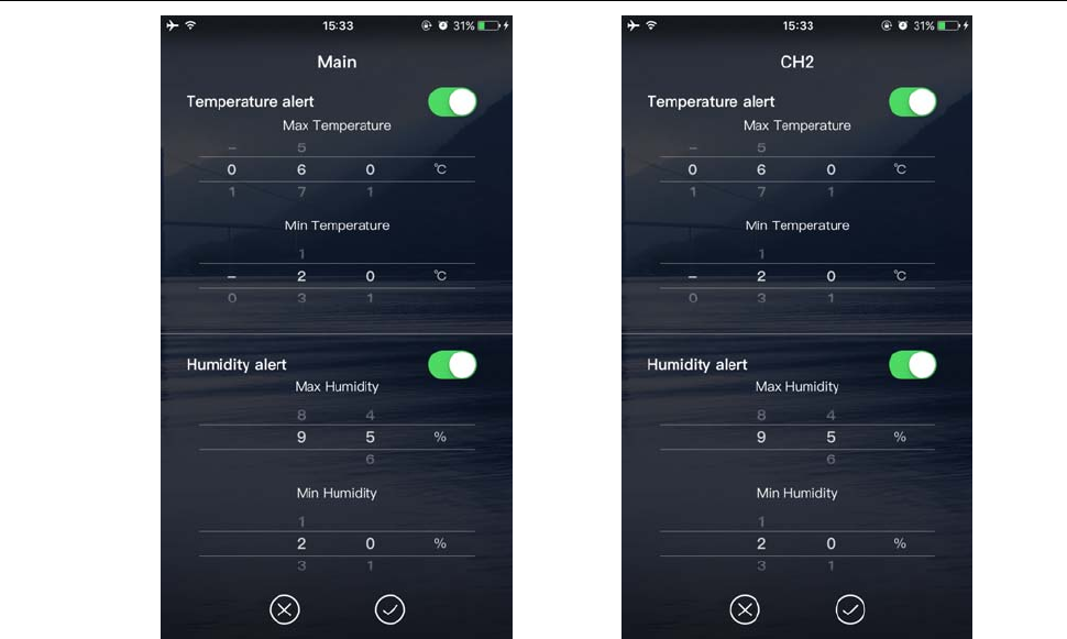Temperature and humidity alarm setup is complete, click on the "V" after the confirmation, the base