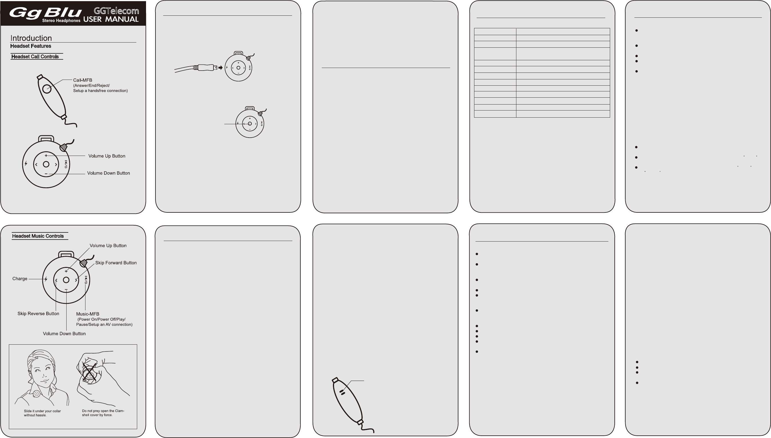 G G Telecom 0010 Bluetooth Stereo Headset User Manual GGblu